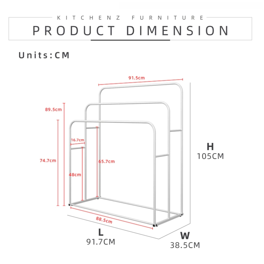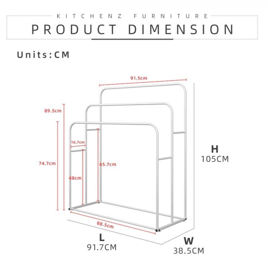 KitchenZ Freestanding Powder Coated Metal Bathroom Towel Rack Hanger/ Clothes Dryer Round Corner Cleaning