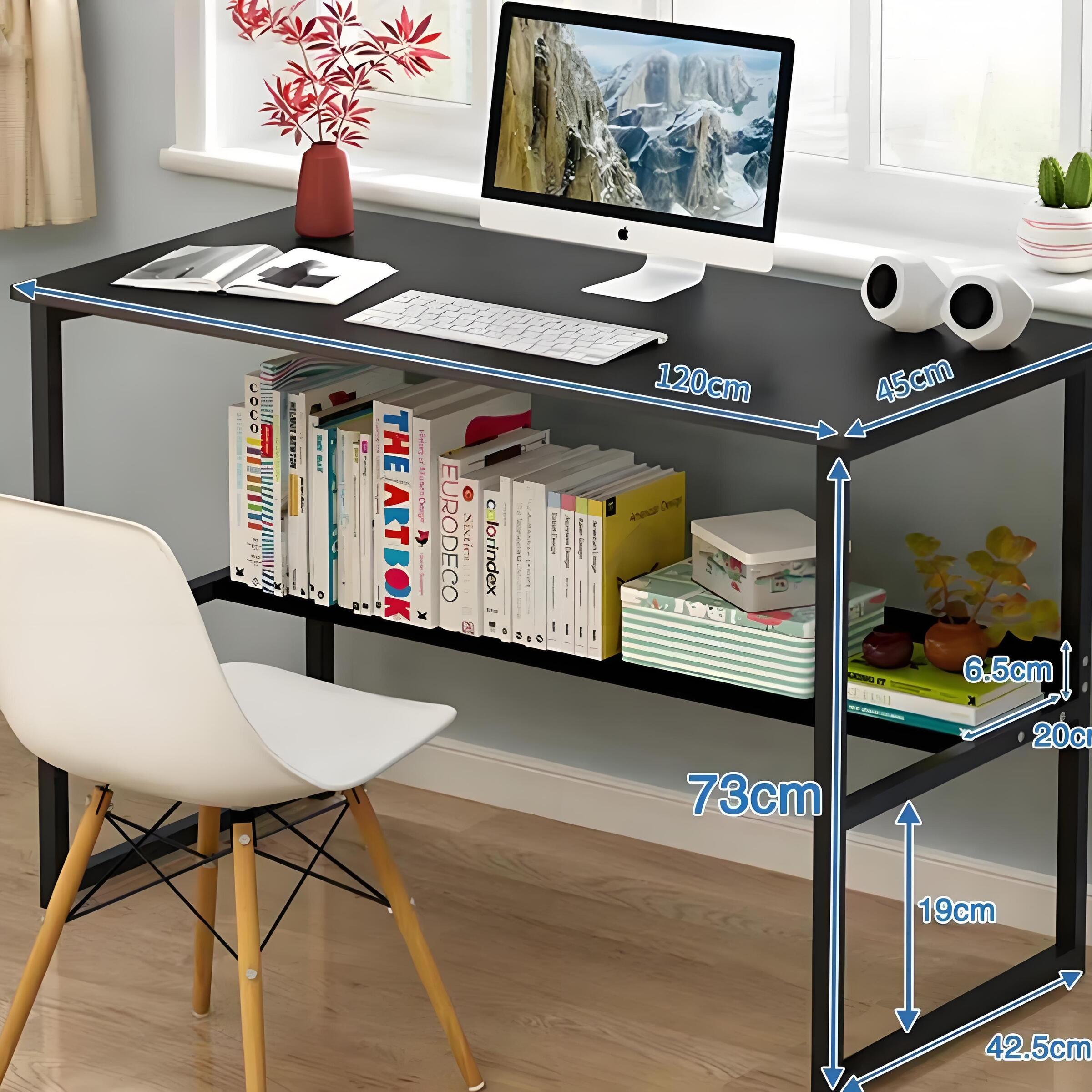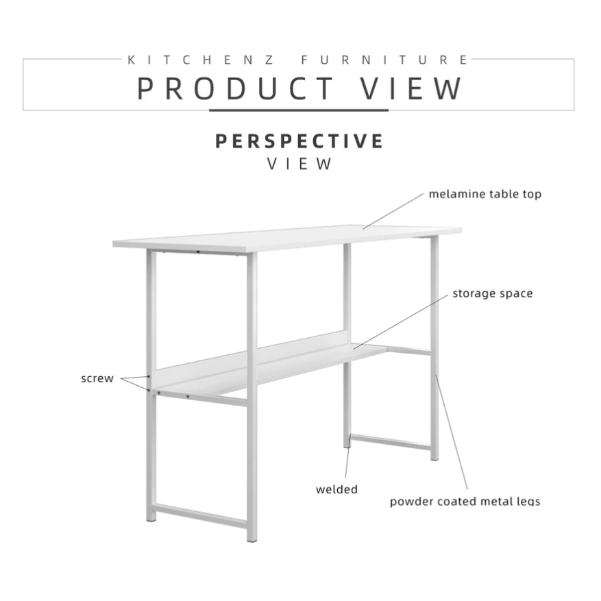 KitchenZ 120cm 2 Layer Writing Table Study Table Storage Shelf Anti-scratch Metal Leg Stable Durable