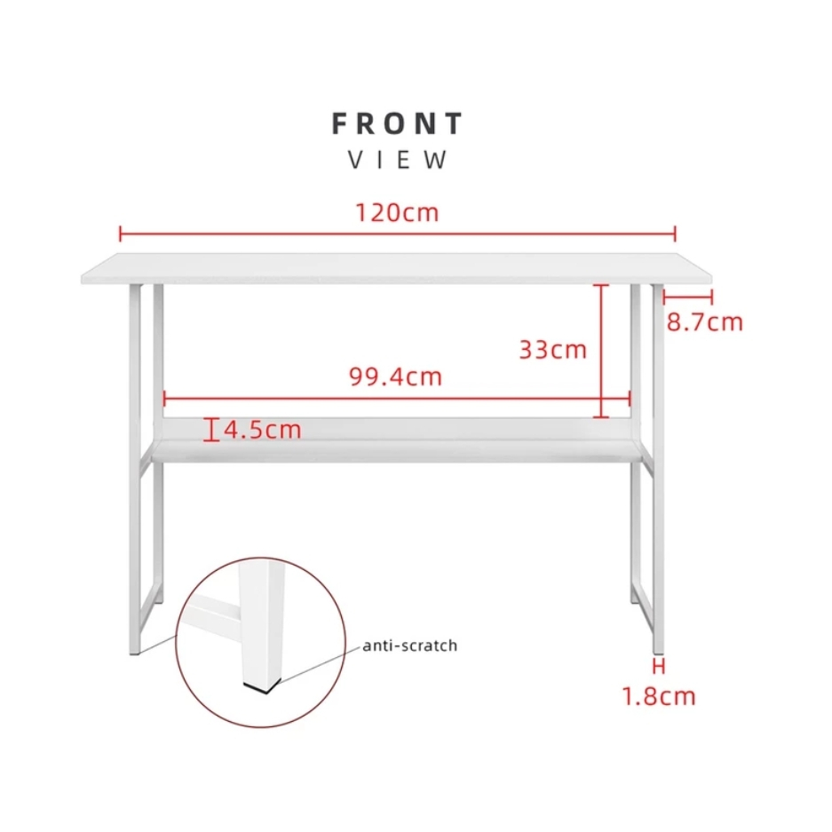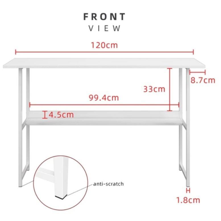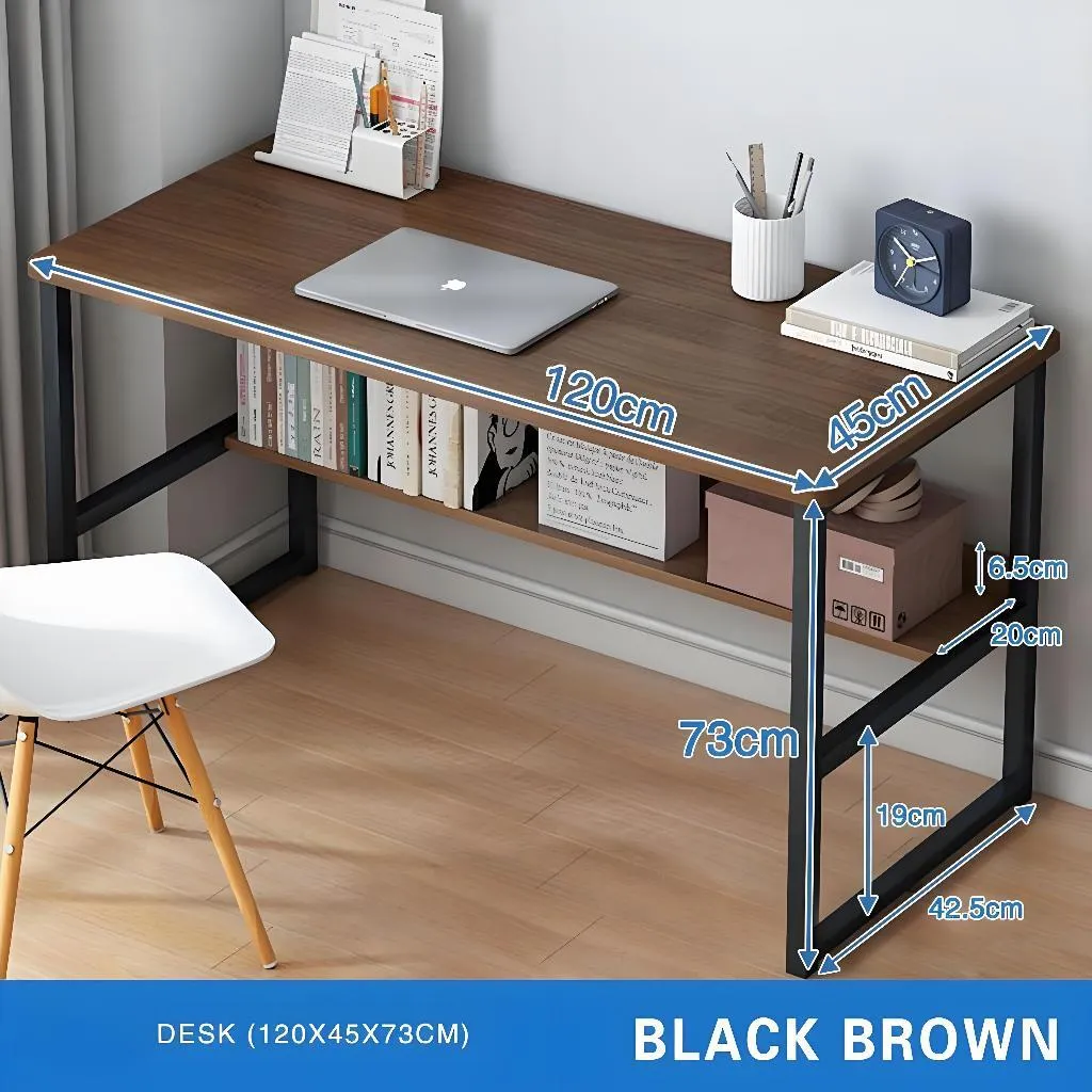 KitchenZ 120cm 2 Layers Writing Table Study Table Desk Storage Shelf Anti-scratch Metal Leg Stable & Study