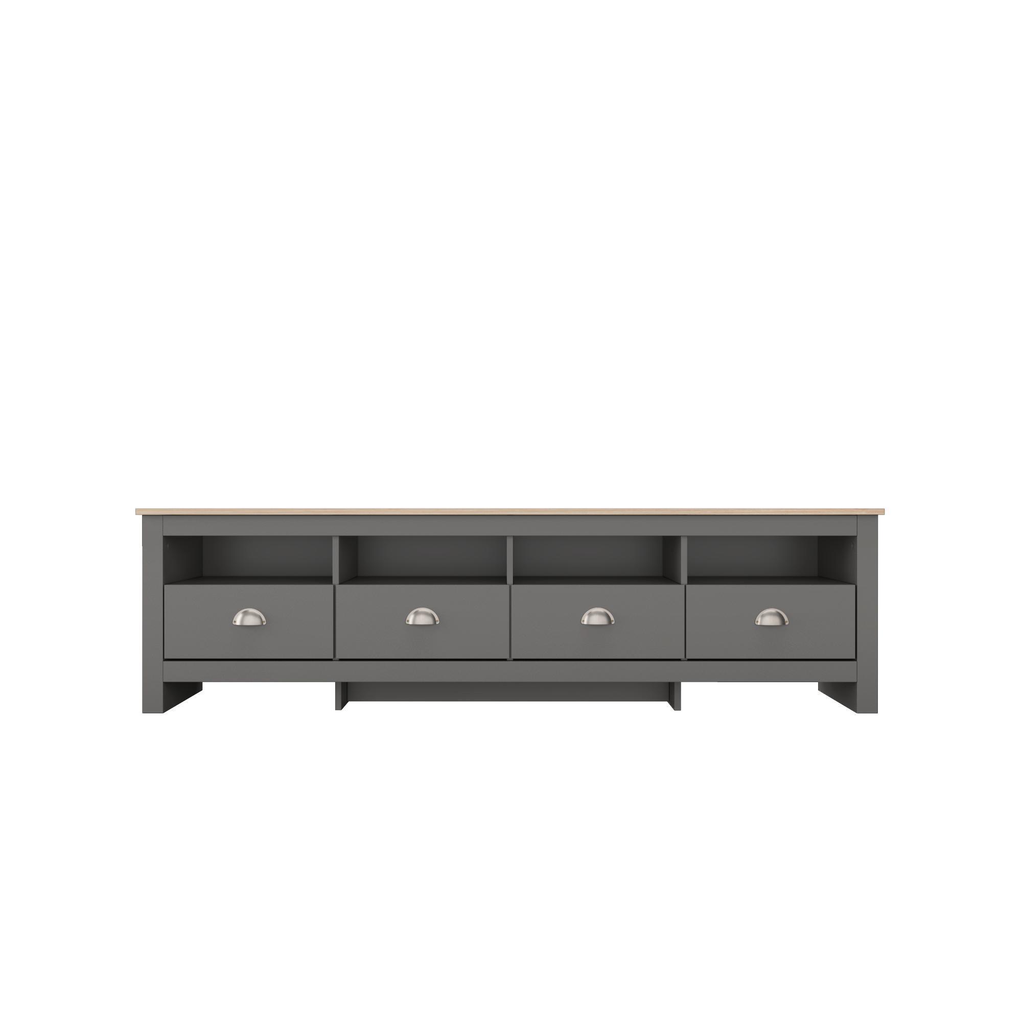 KitchenZ 15mm Thick Wooden TV Cabinet 5.9FT L180xW40xH50cm TV Storage with 4 Drawers 4 Open Storage TV Stand