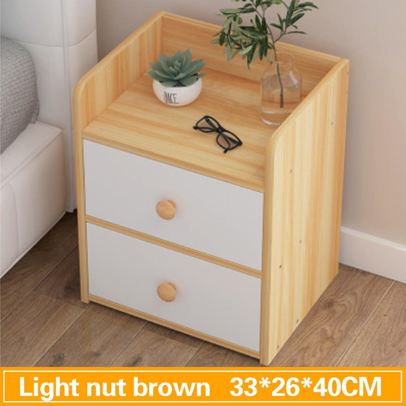 KitchenZ 15mm Thick Wooden Side Table L40xW40xH49.5cm Bedside Tables with 2 Layer Drawer Storage