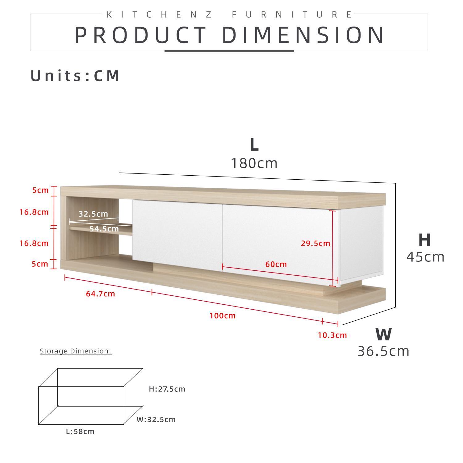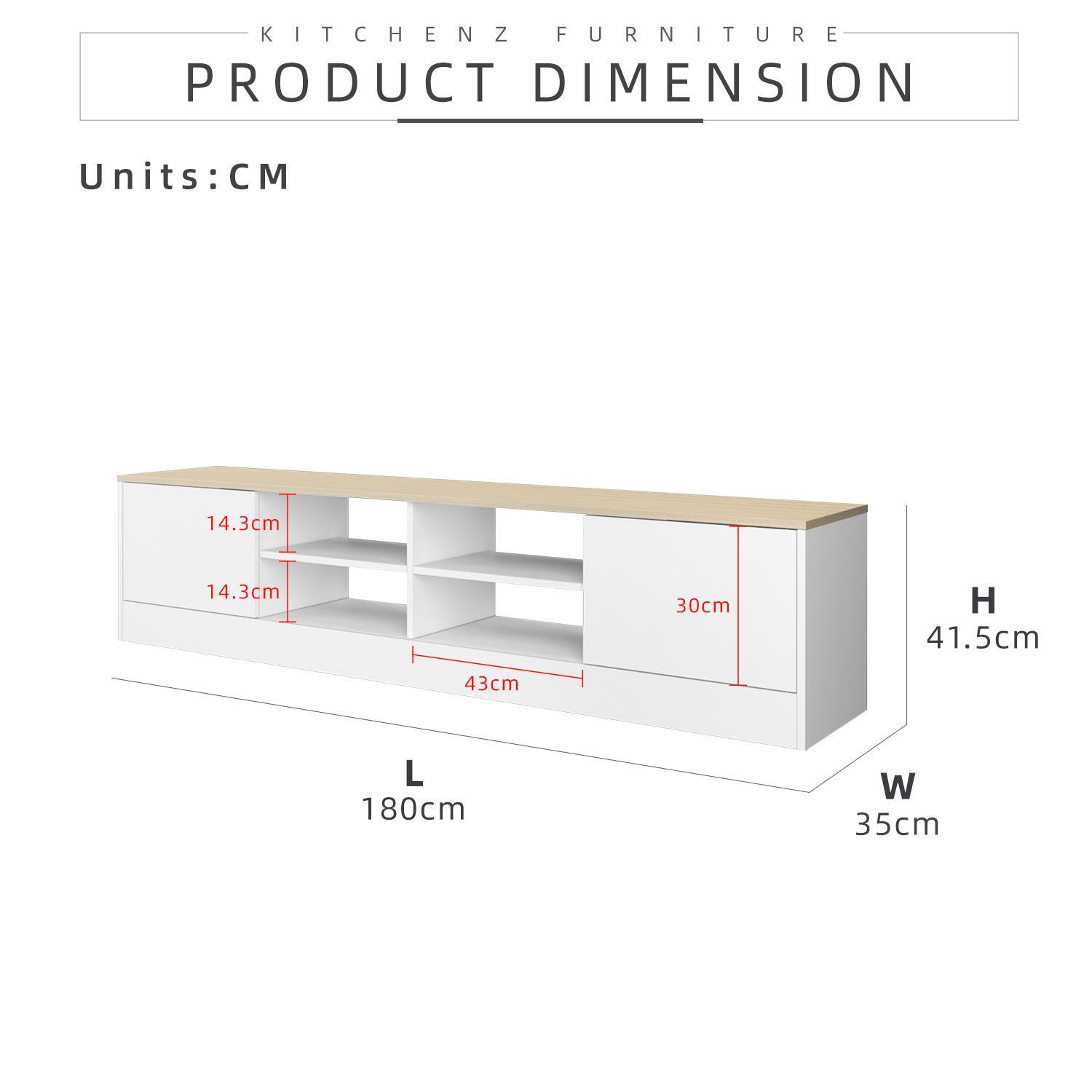 KitchenZ 50mm Thick Wooden TV Cabinet L180xW36.5xH45cm TV Storage TV Stand Minimalist Jordan Series