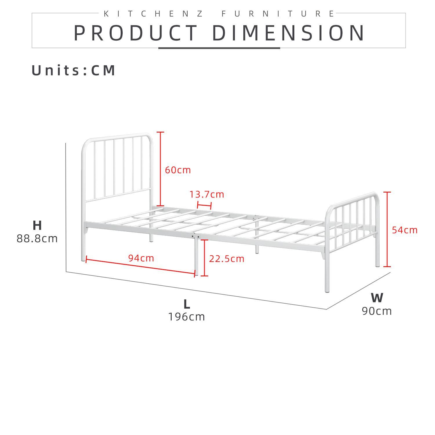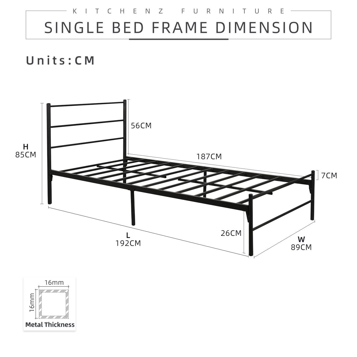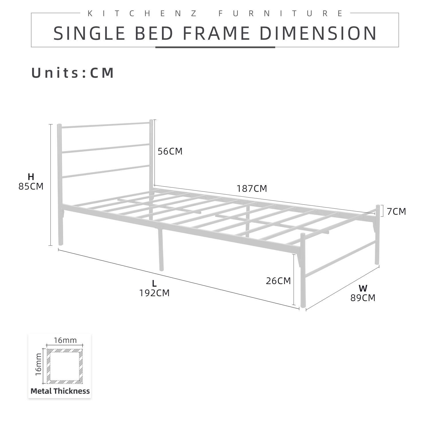 KitchenZ Metal 3V Single Bed Frame Powder Coat Metal Bed Frame Strong Bearing Capacity Durable