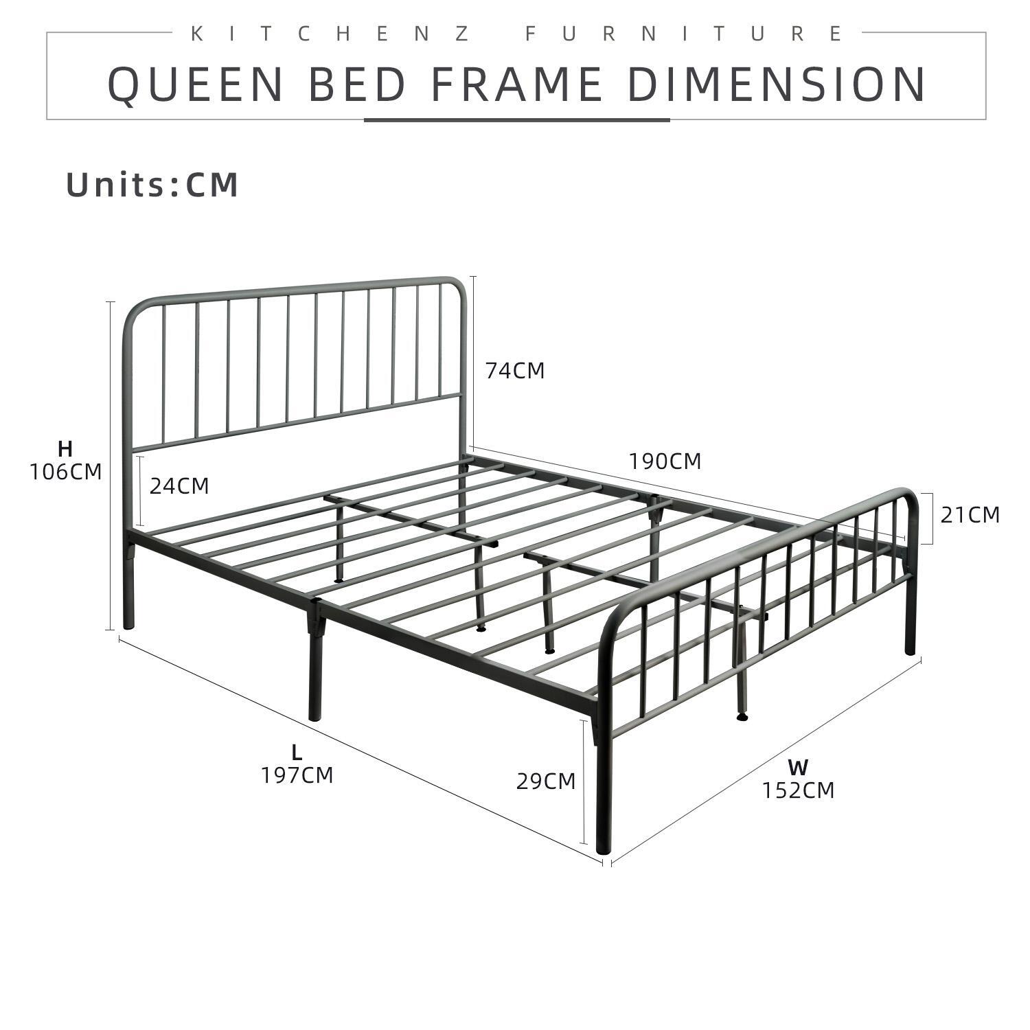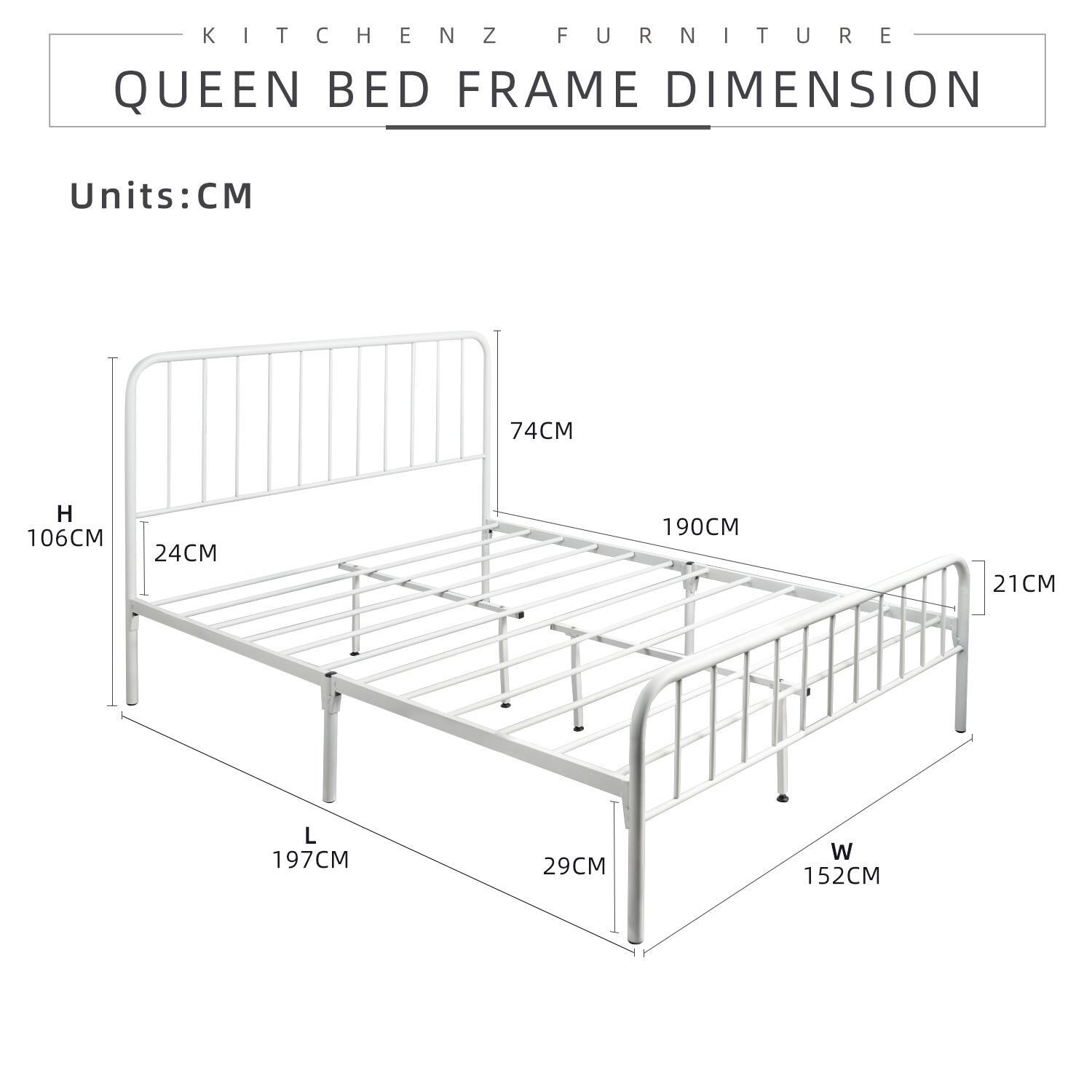 KitchenZ 6.3FT H106cm x L194cm x W152cm 3V Powder Coated Metal Queen Size Bed Frame