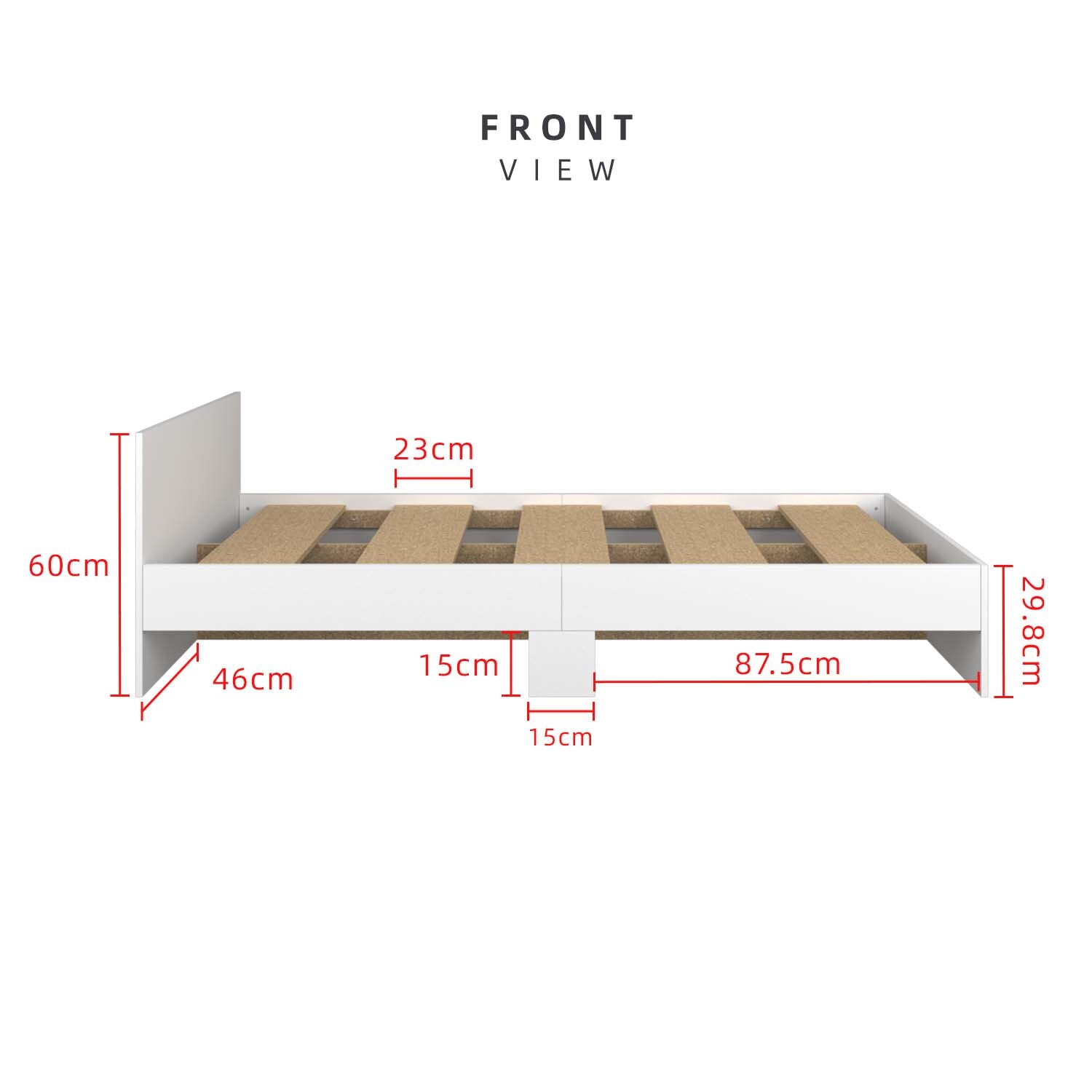 KitchenZ 15mm Thick Wooden Single Bed Frame with Headboard L193cm x W93.5cm x H60cm White Particle Board Modern Simple Design Sturdy Durable Self Assembly Required 12 Months Warranty