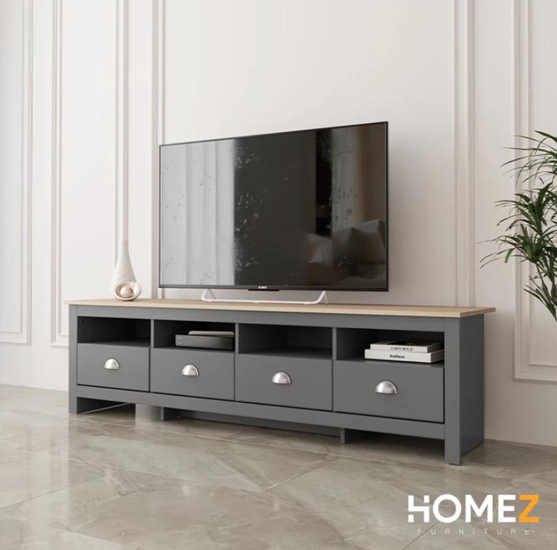 KitchenZ 15mm Thick Wooden TV Cabinet 5.9FT L180xW40xH50cm TV Storage with 4 Drawers 4 Open Storage TV Stand