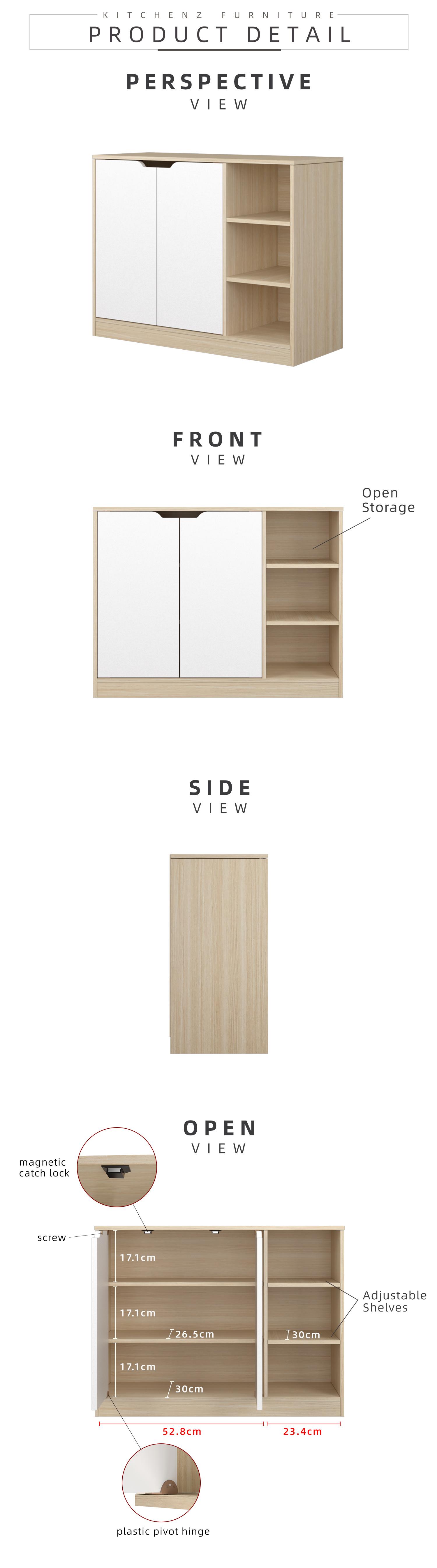 KitchenZ 2.6FT L80cm Shoe Cabinet with Door Large Storage Capacity 12mm Thick Durable Shoe Rack with 3 open Storage Modernist Design Organiser Shelf
