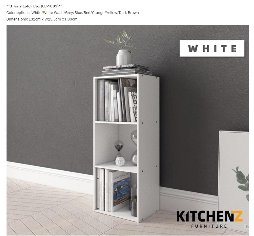 KitchenZ 9mm Thick 3 Tier Storage Rack Book Rack Bookcase Cabinet L32cm x W23.5cm x H80cm Multi Purpose Cabinet