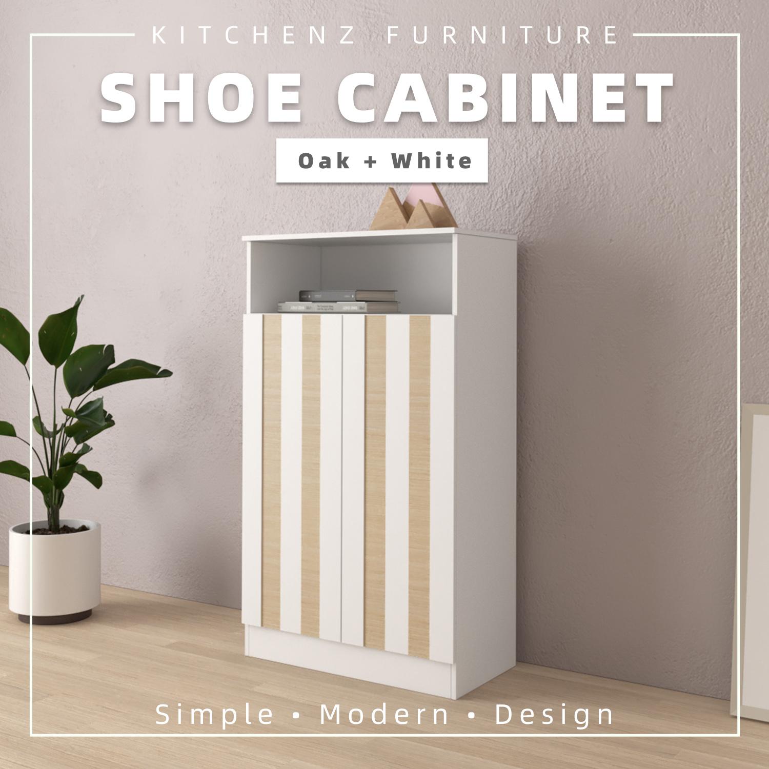 KitchenZ H104cm 4 Tiers 2 Doors Shoe Cabinet Modernist Design Shoe Rack Durable