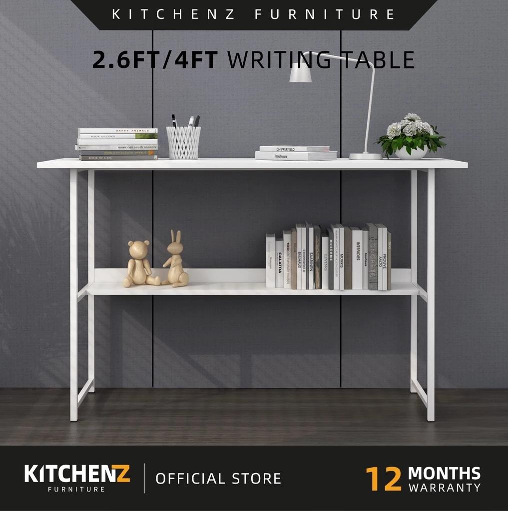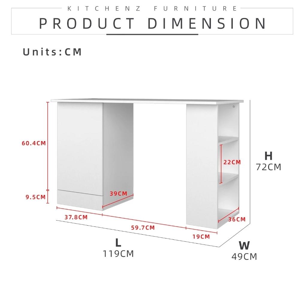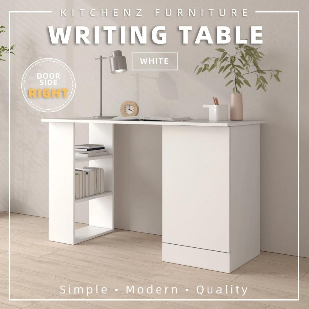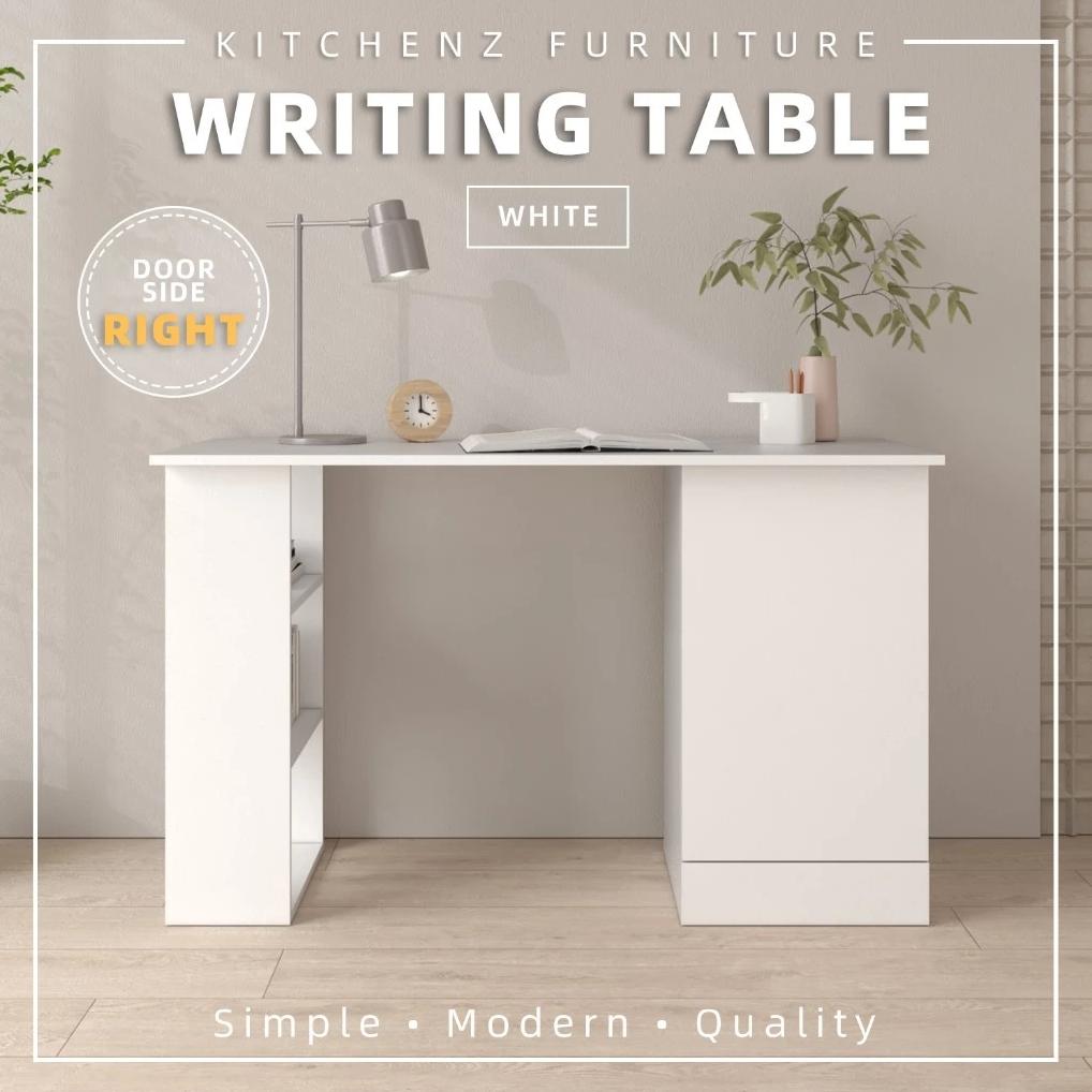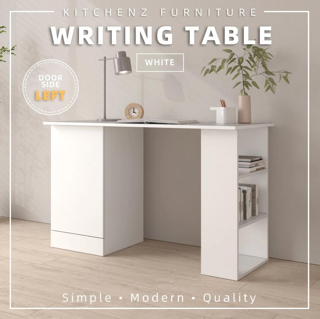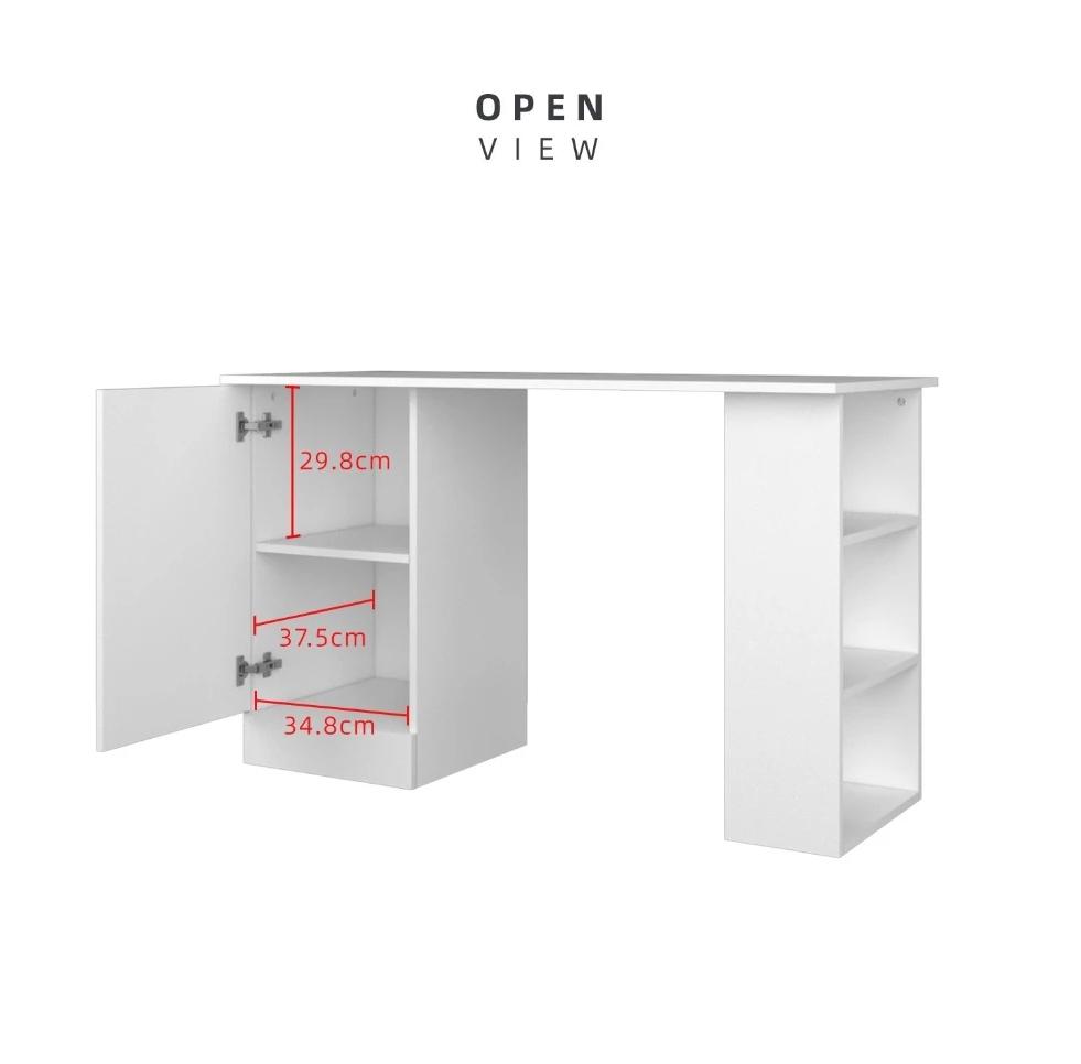 KitchenZ 120cm 3.9FT Study Desk Writing Table Office Table 1 Door + 3 Open Storage Left/Right Stable & Study 15mm thick Durable Scratch Resistant