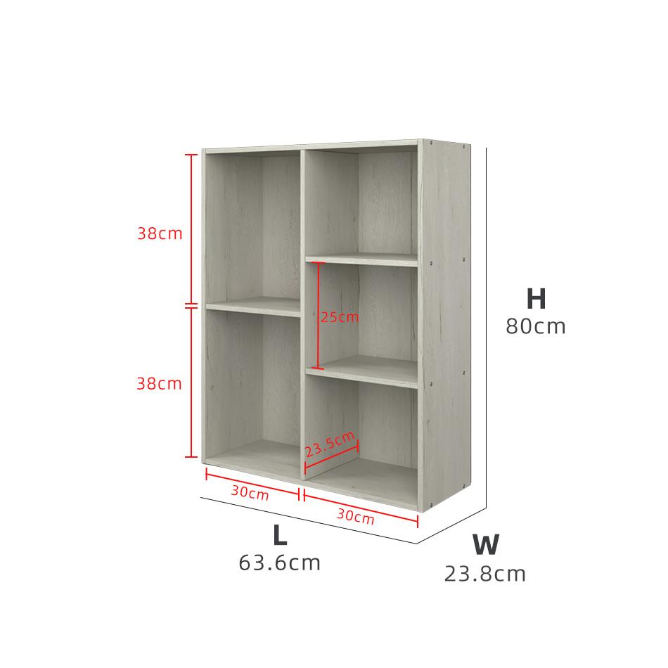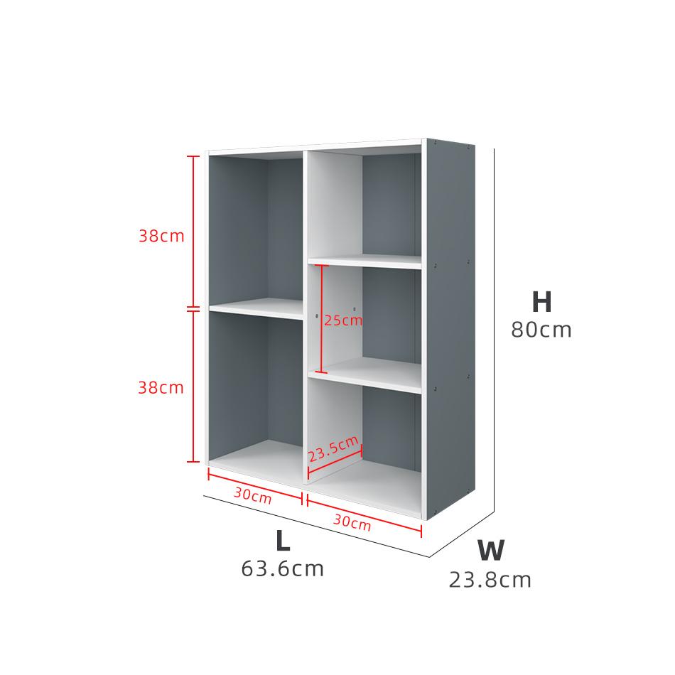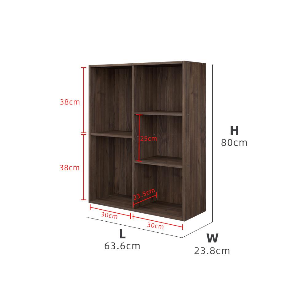 KitchenZ 12mm Thick Wooden Open Storage Book Cabinet 5 Compartment Durable Utility Cabinet Multi-Purpose Functional Bookcase Storage Rack
