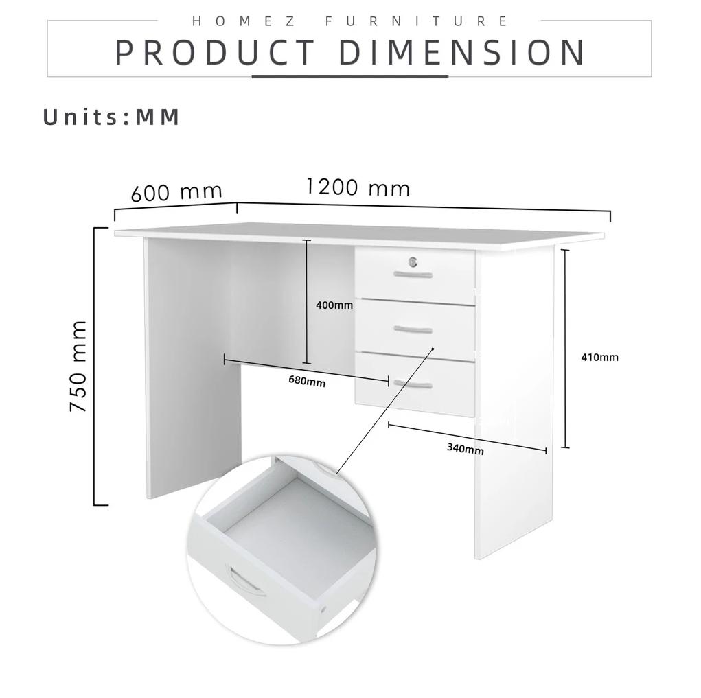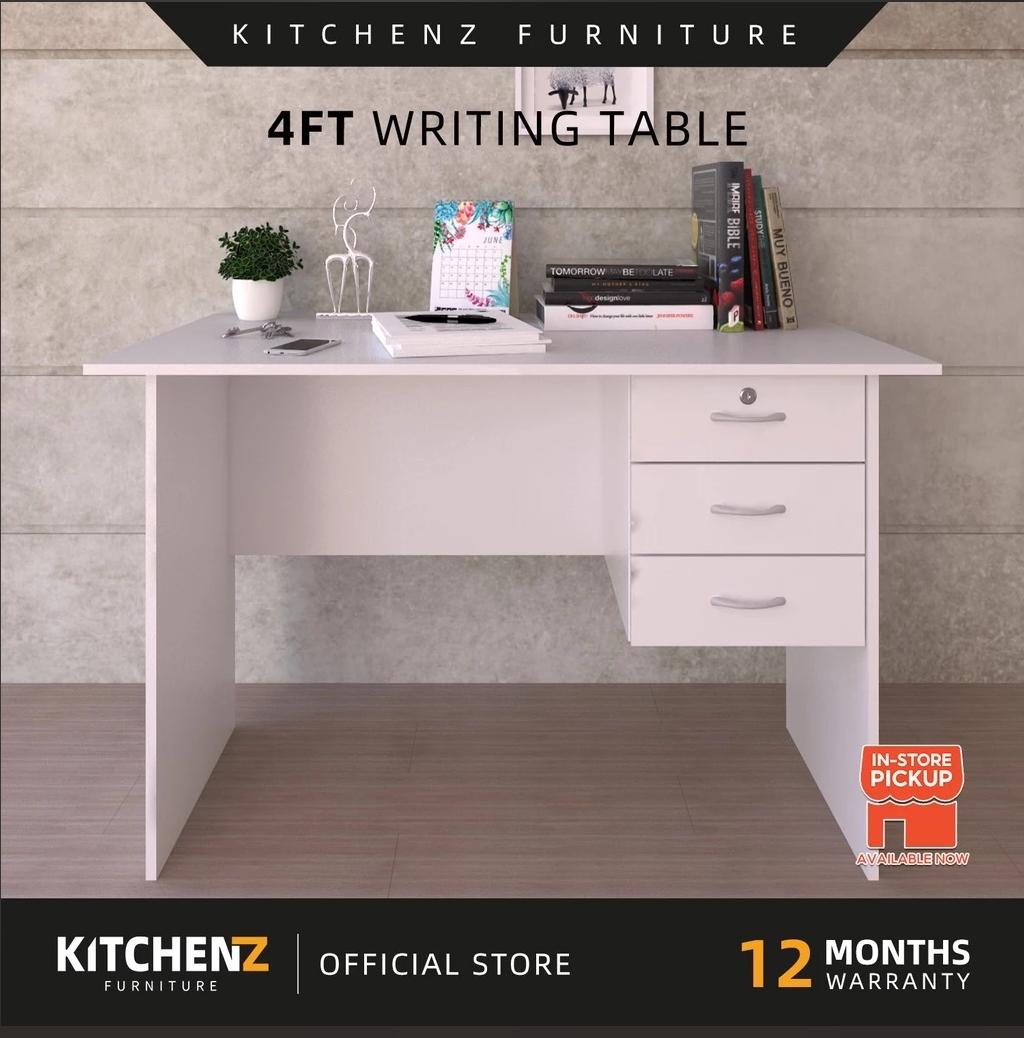 KitchenZ 15mm Thick 4FT 120cm Writing Table Study Table with 3 Drawers 1 locker Storage Study Desk