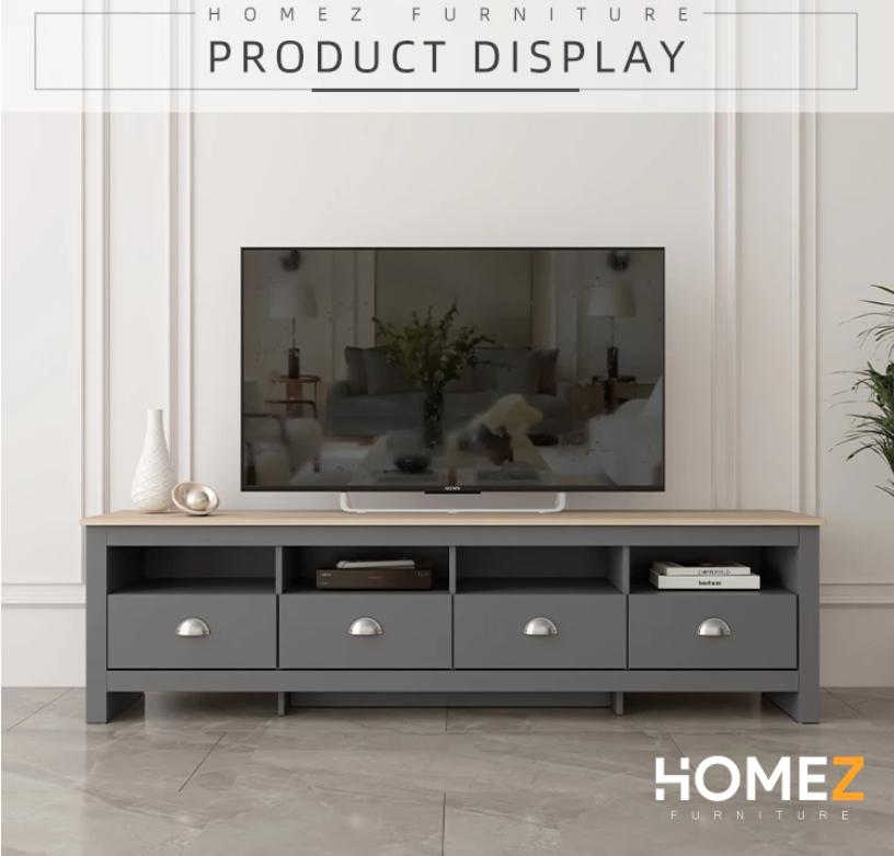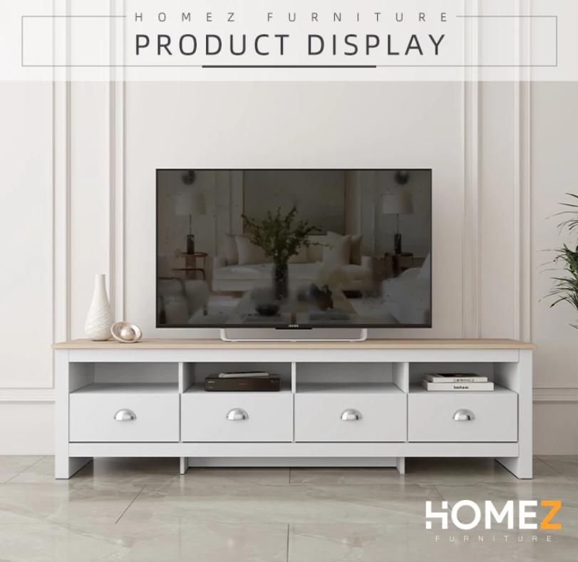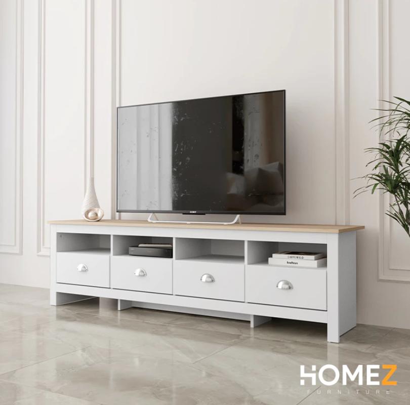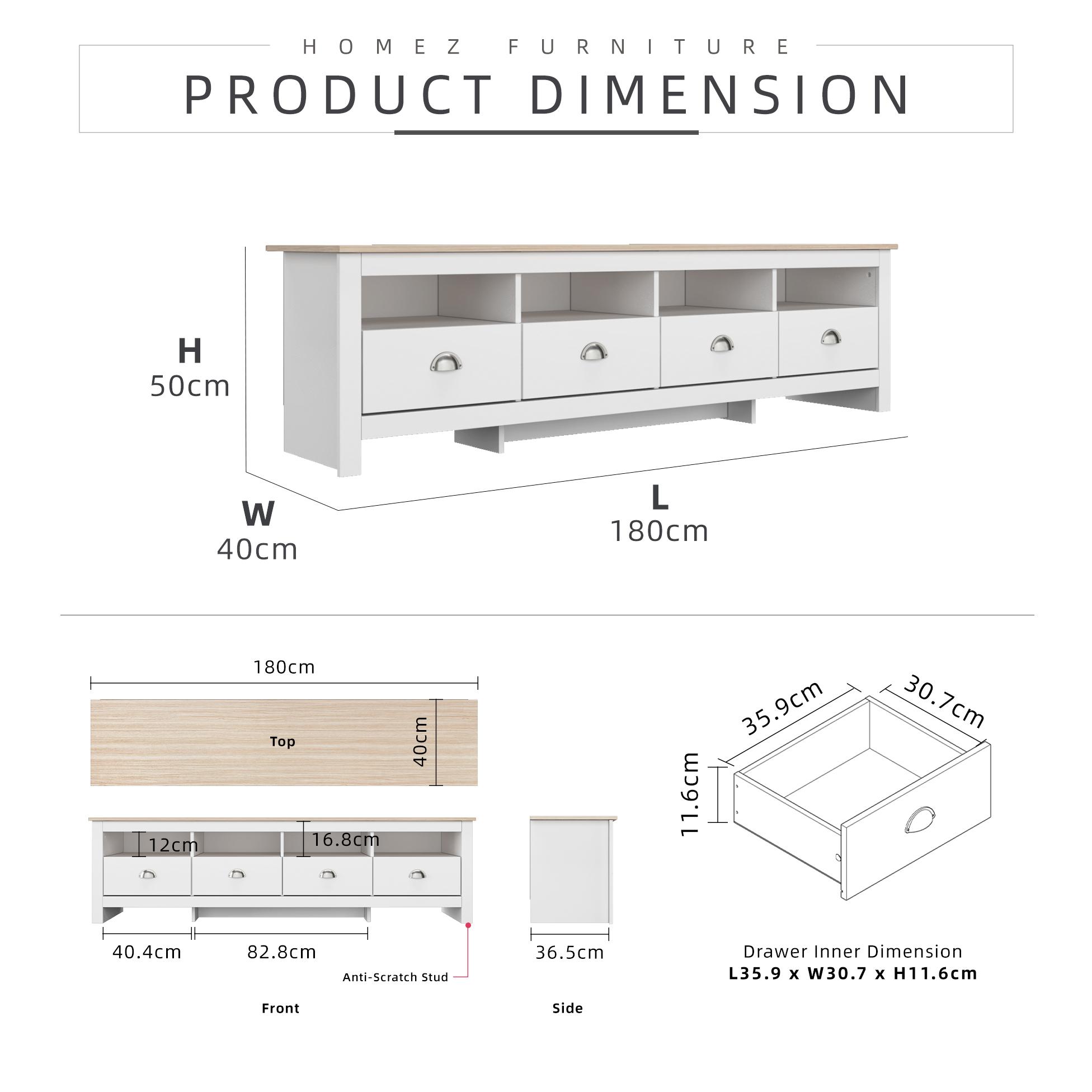 KitchenZ 15mm Thick Wooden TV Cabinet 5.9FT L180xW40xH50cm TV Storage with 4 Drawers 4 Open Storage TV Stand