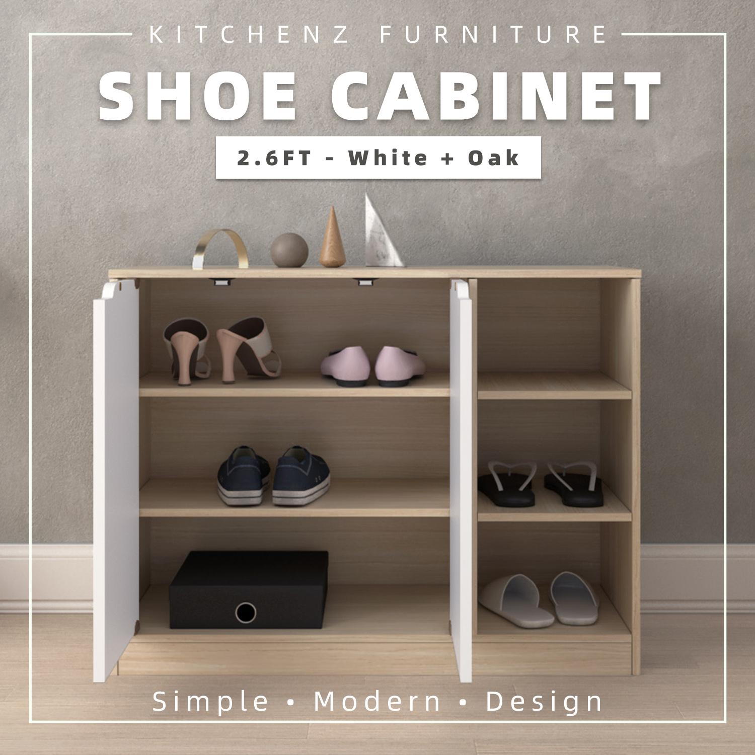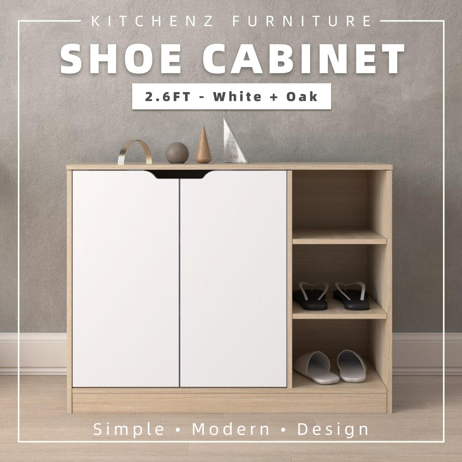 KitchenZ 2.6FT L80cm Shoe Cabinet with Door Large Storage Capacity 12mm Thick Durable Shoe Rack with 3 open Storage Modernist Design Organiser Shelf