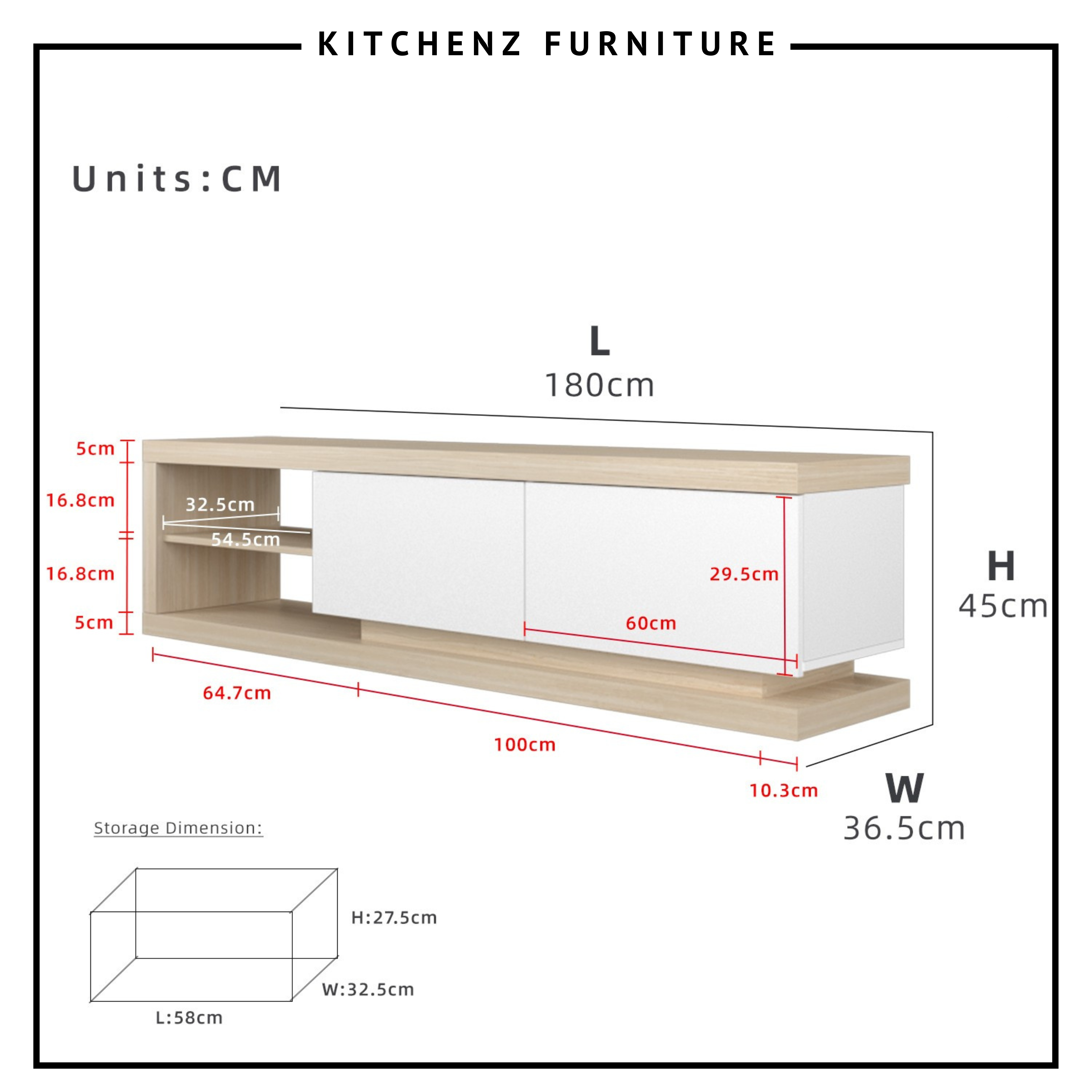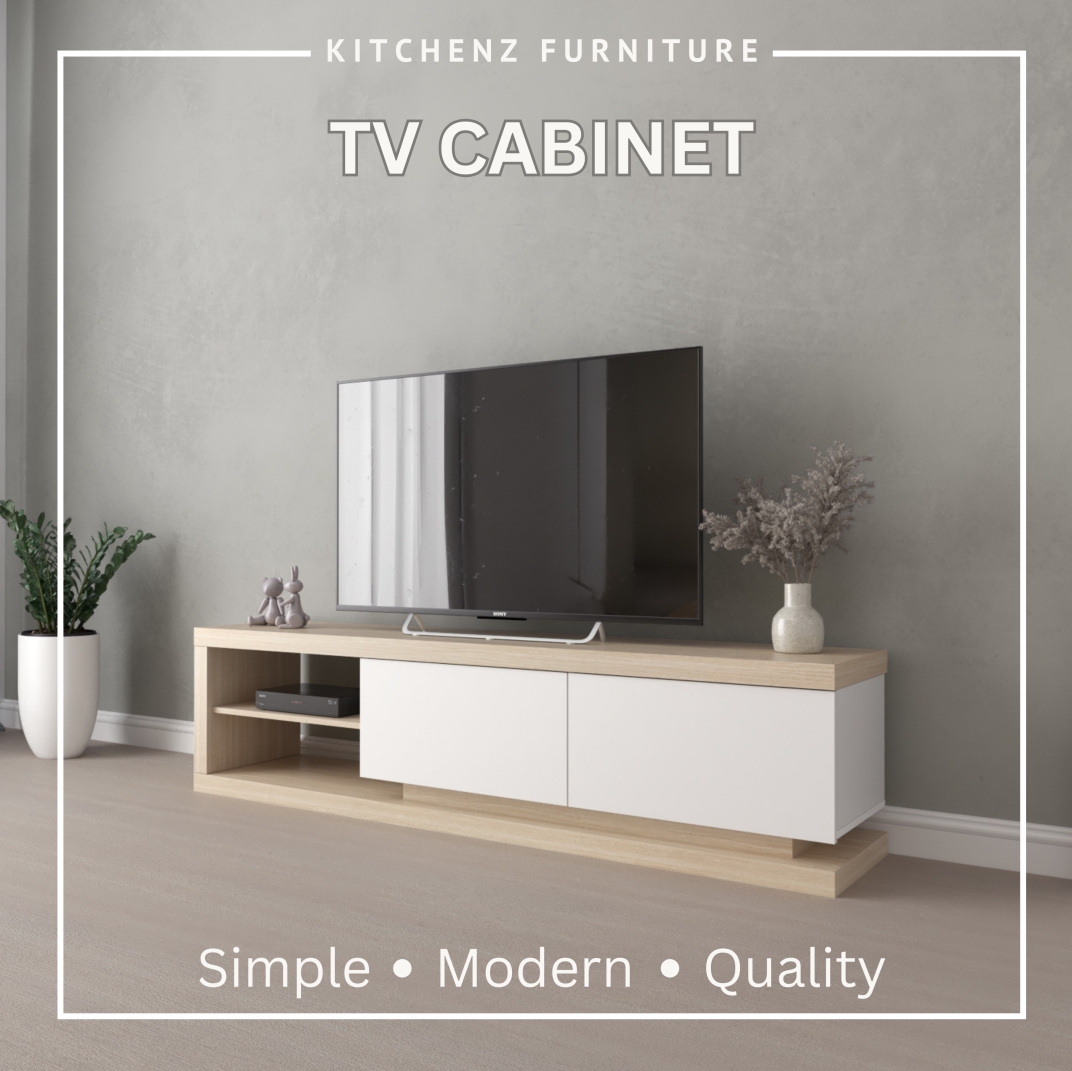 KitchenZ 50mm Thick Wooden TV Cabinet L180xW36.5xH45cm TV Storage TV Stand Minimalist Jordan Series