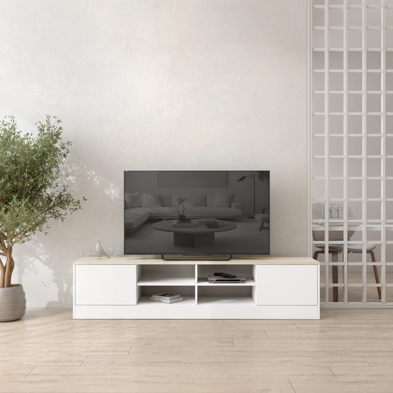 - TV Cabinet with 2 Door and 4 Open Storage