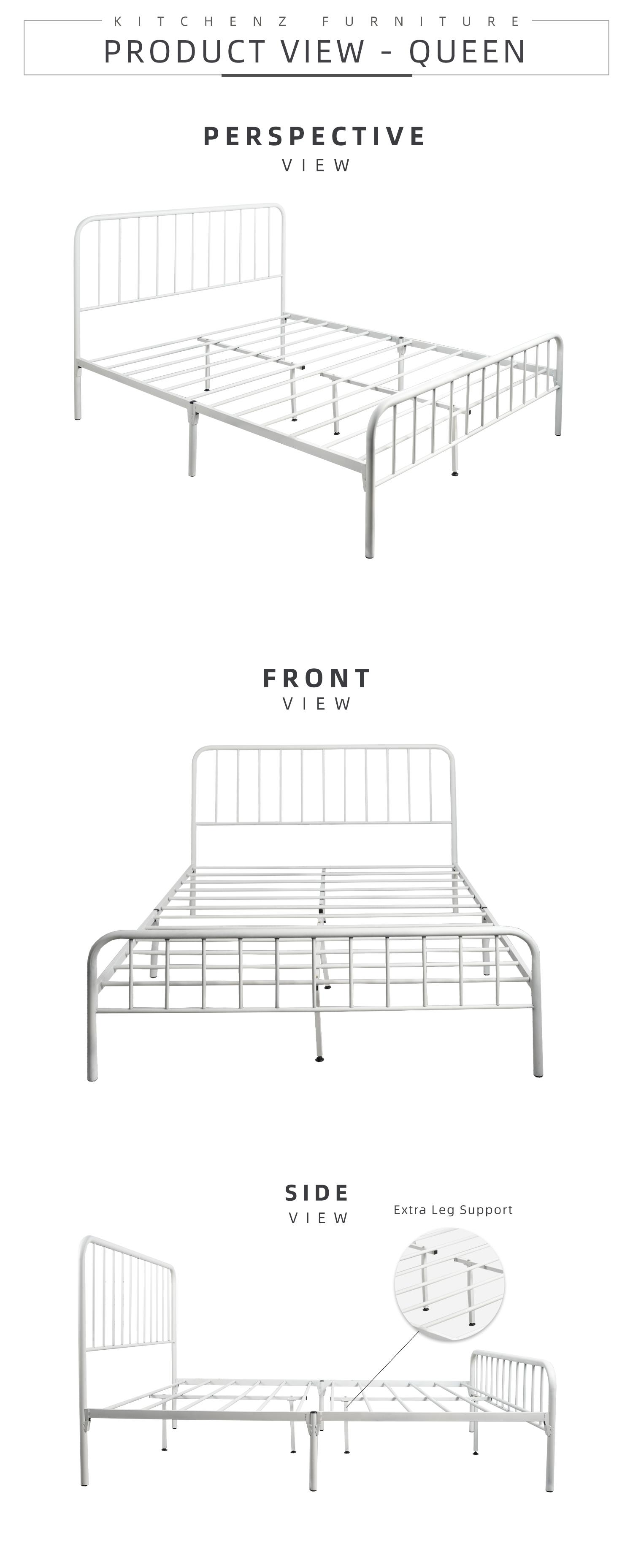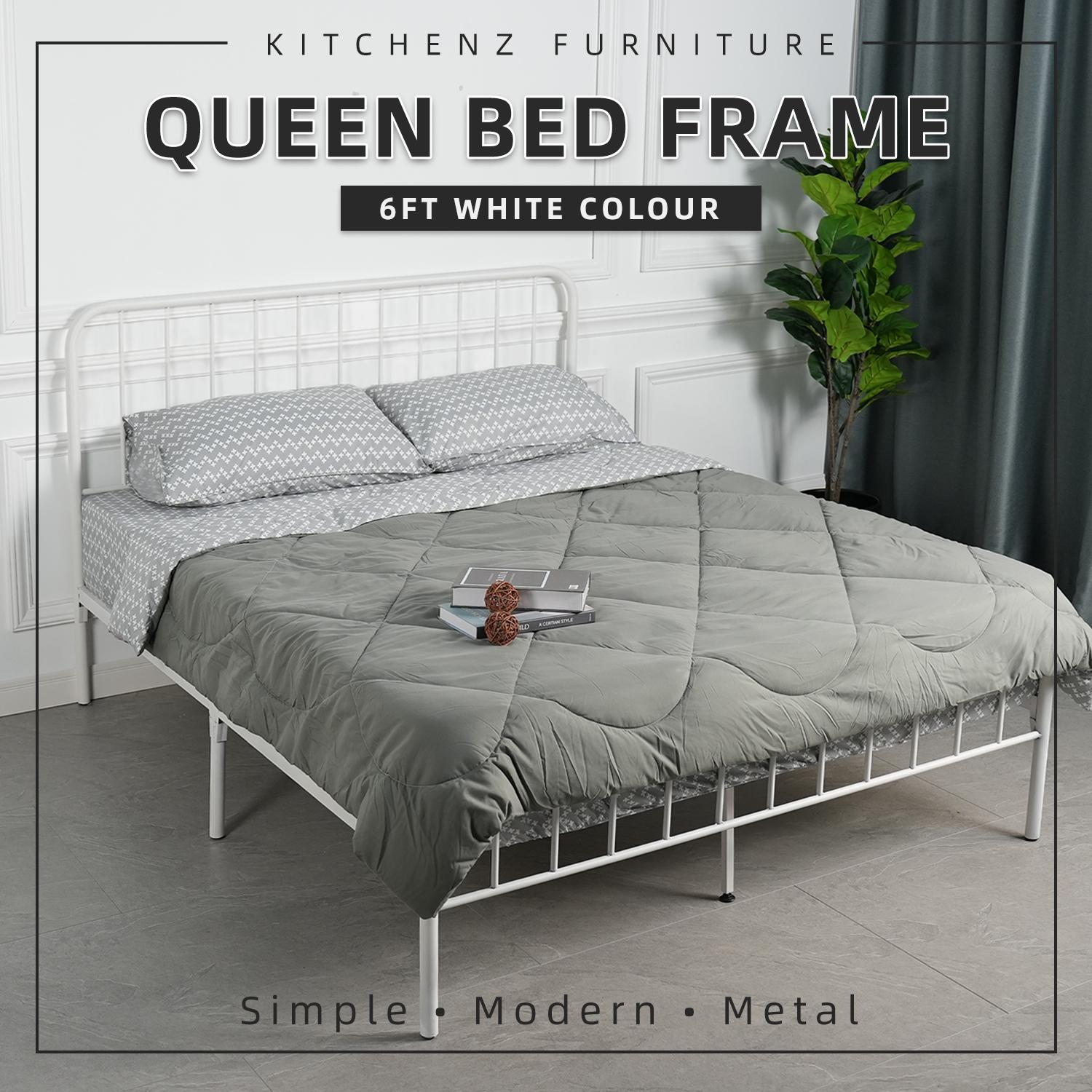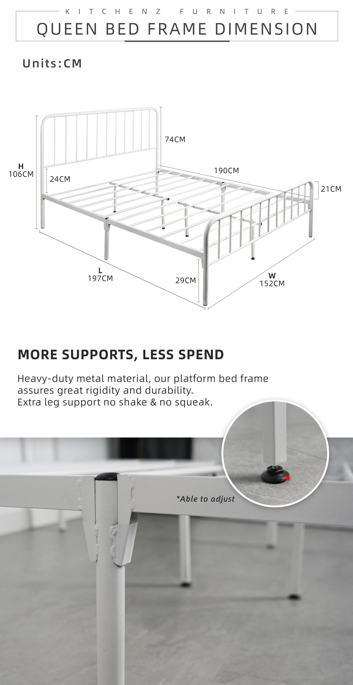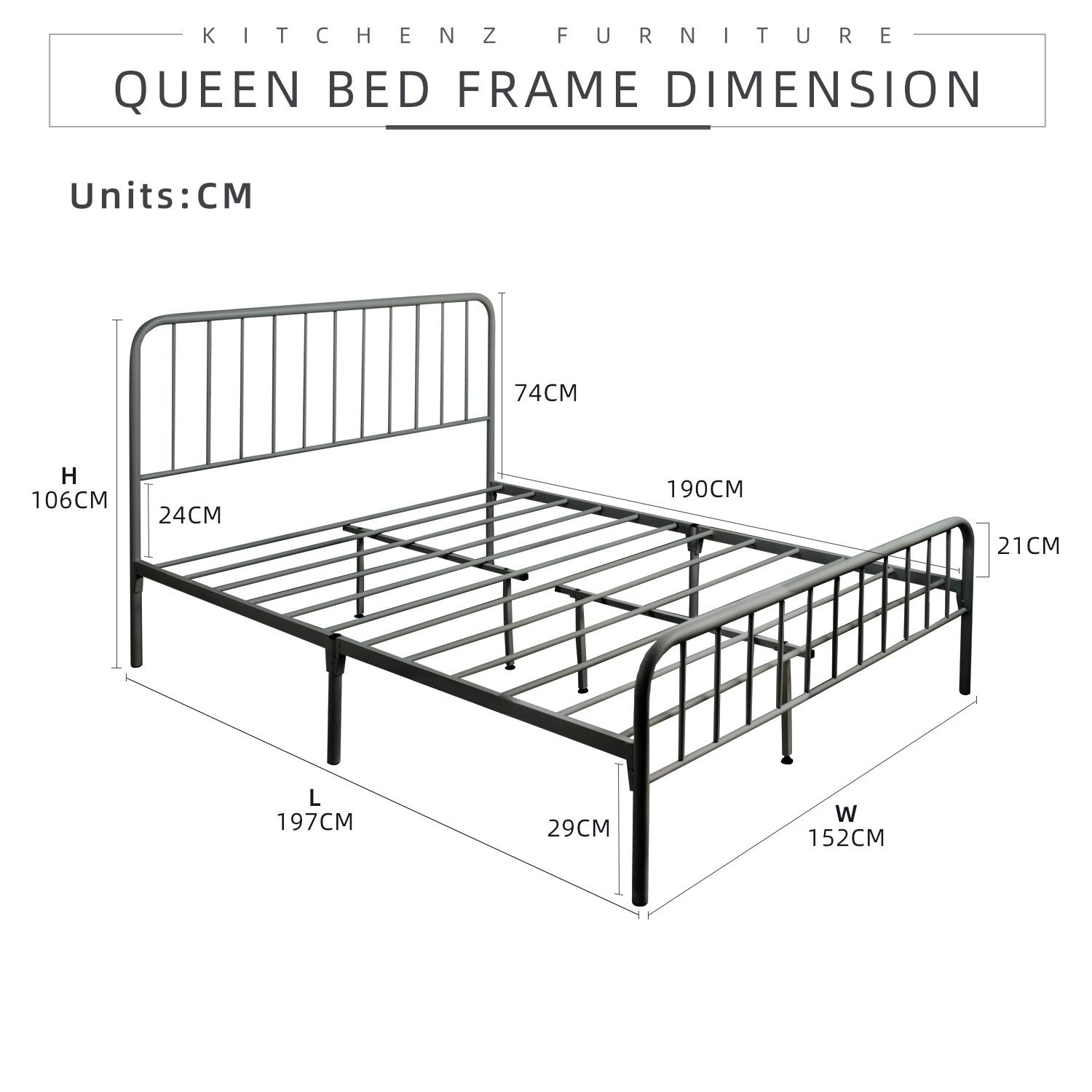 KitchenZ 6.3FT H106cm x L194cm x W152cm 3V Powder Coated Metal Queen Size Bed Frame