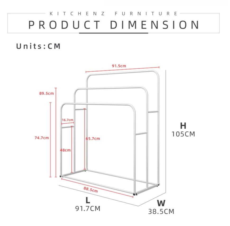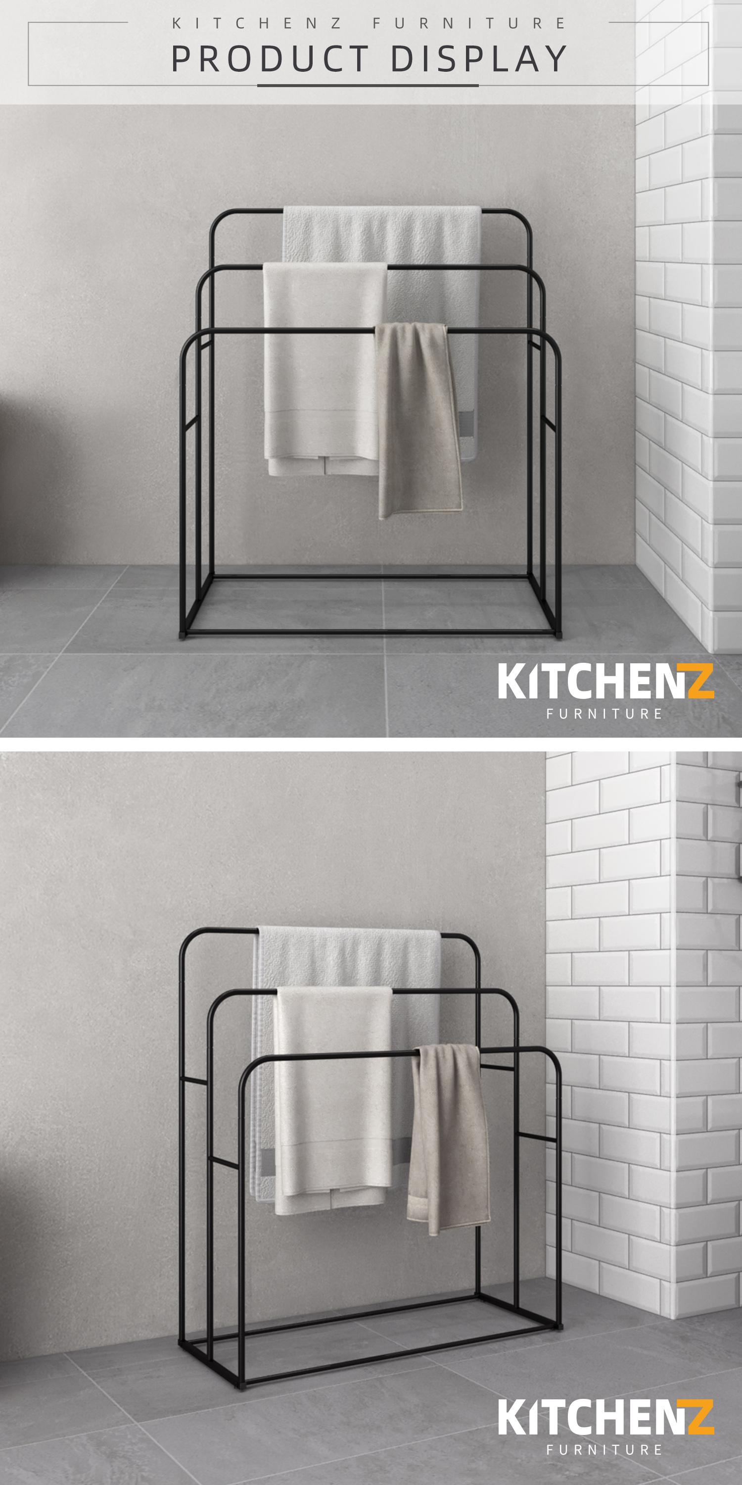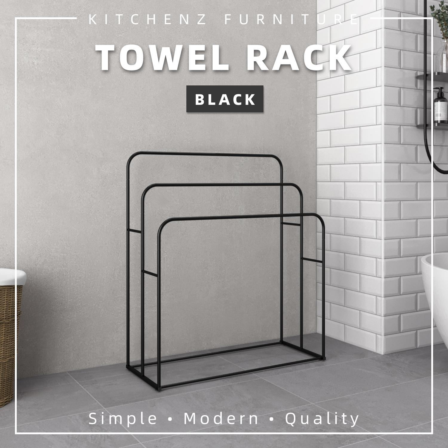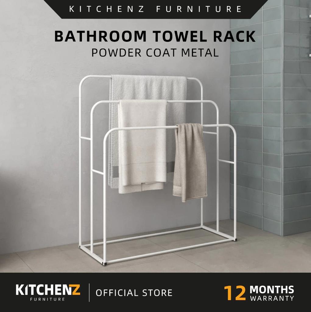KitchenZ Freestanding Powder Coated Metal Bathroom Towel Rack Hanger/ Clothes Dryer Round Corner Cleaning