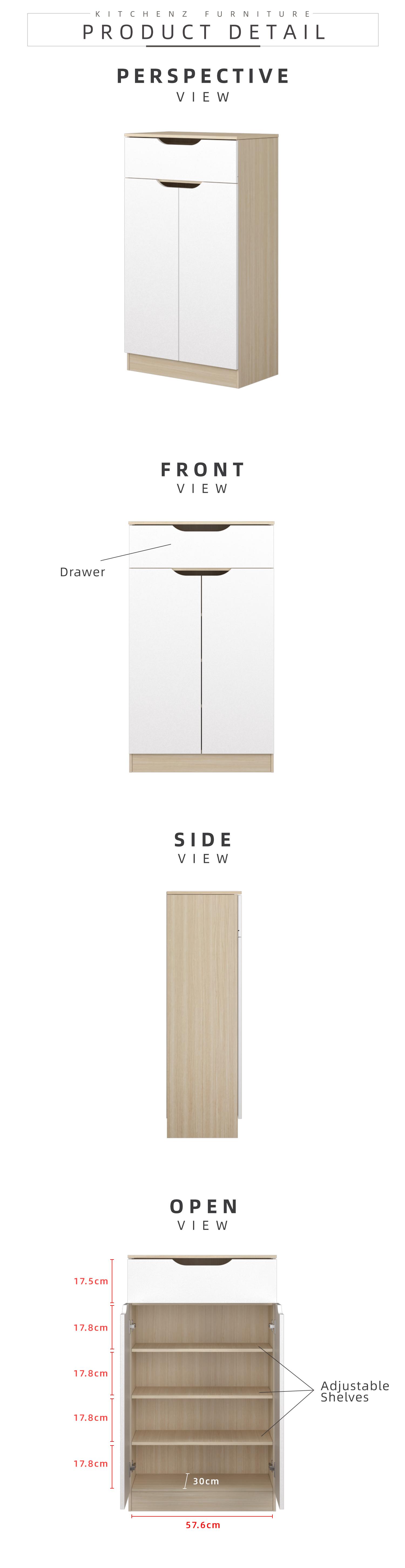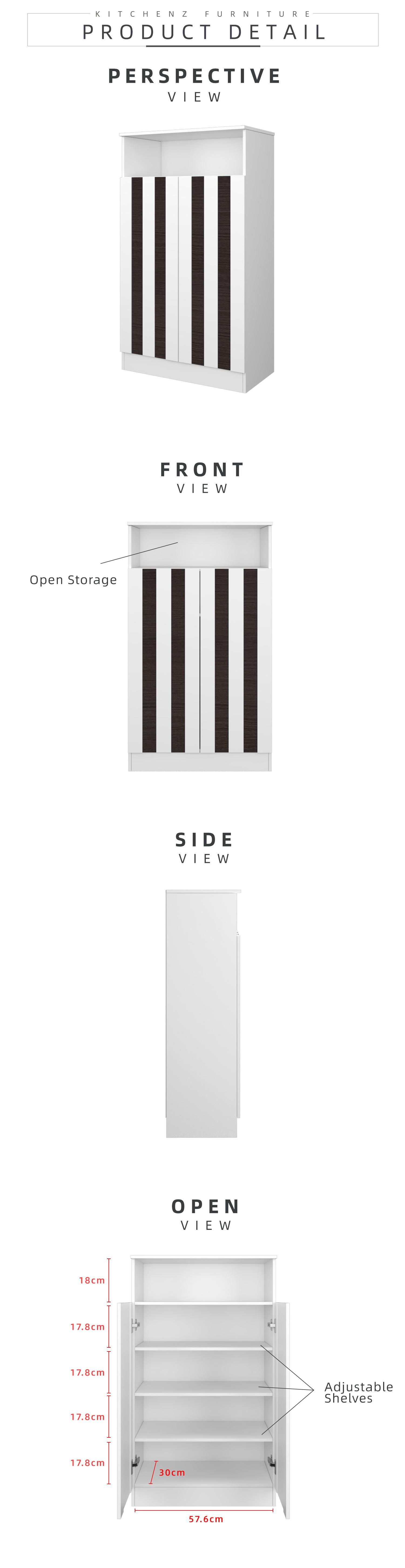 KitchenZ H104cm 4 Tiers 2 Doors Shoe Cabinet Modernist Design Shoe Rack Durable