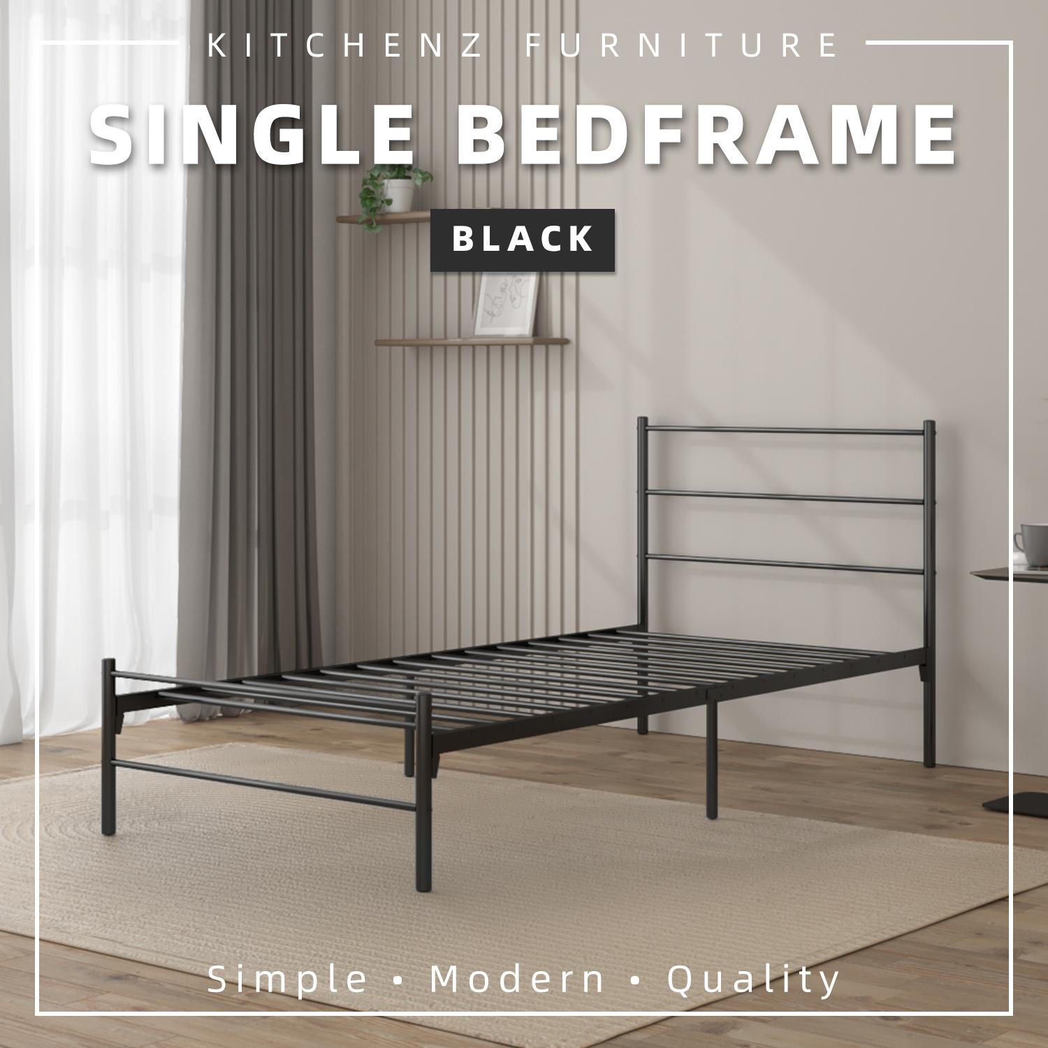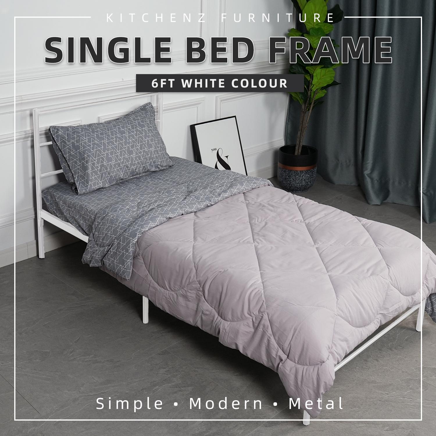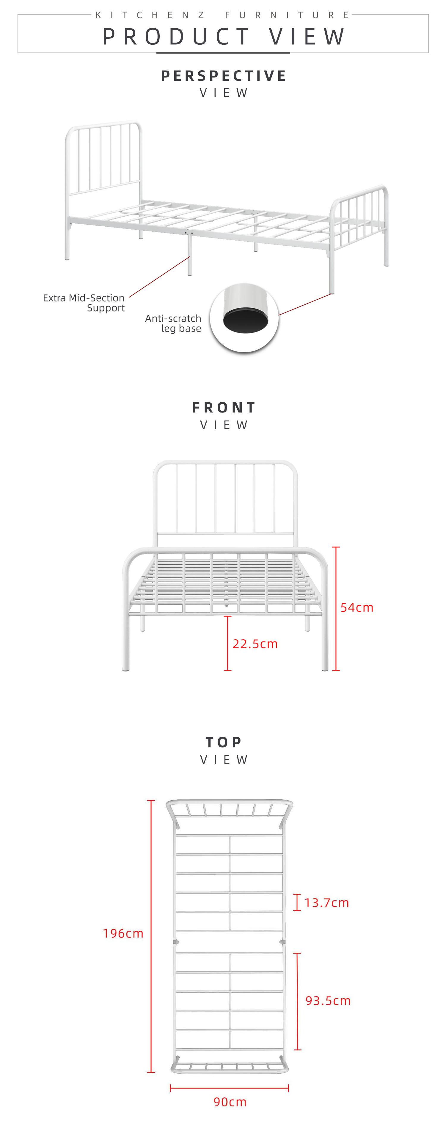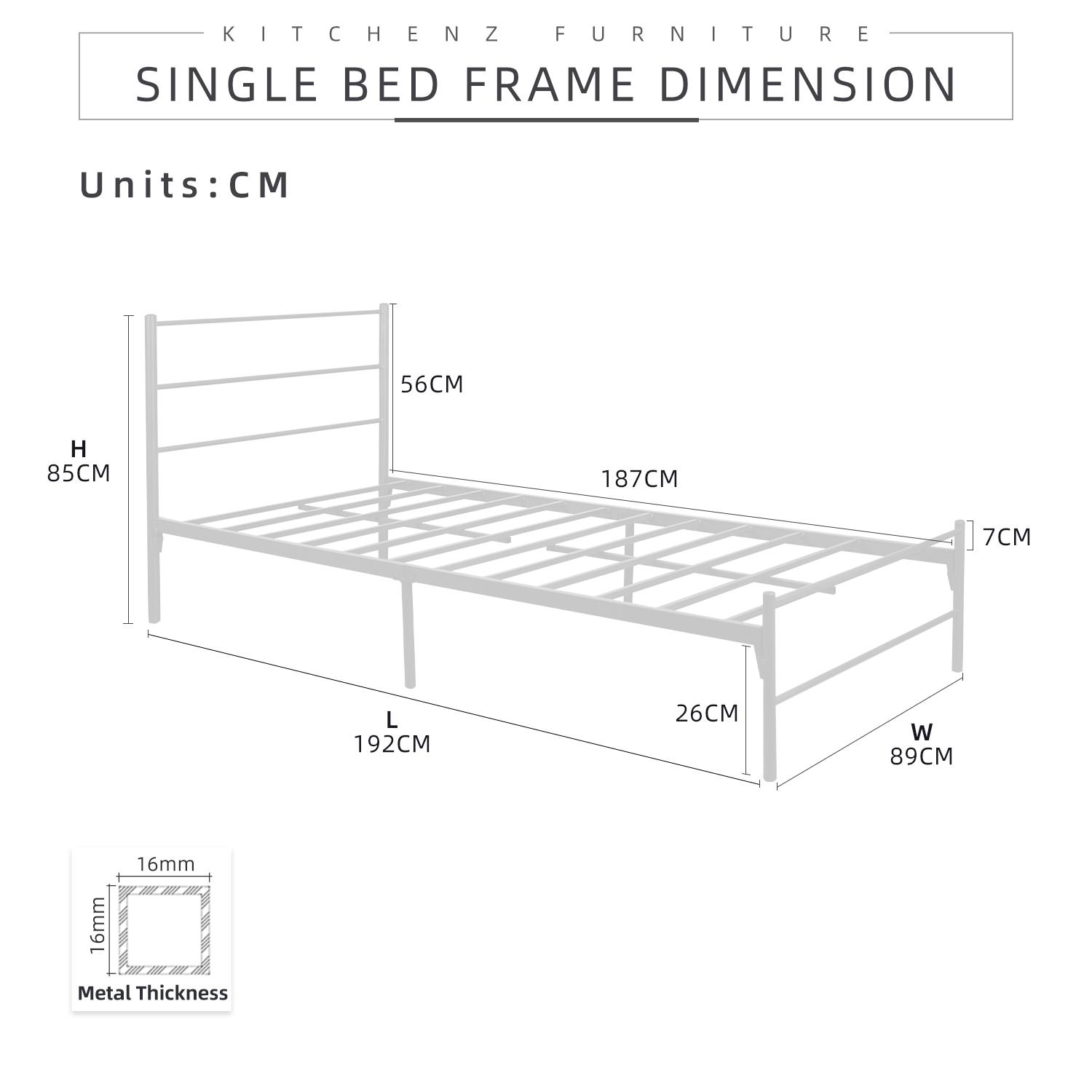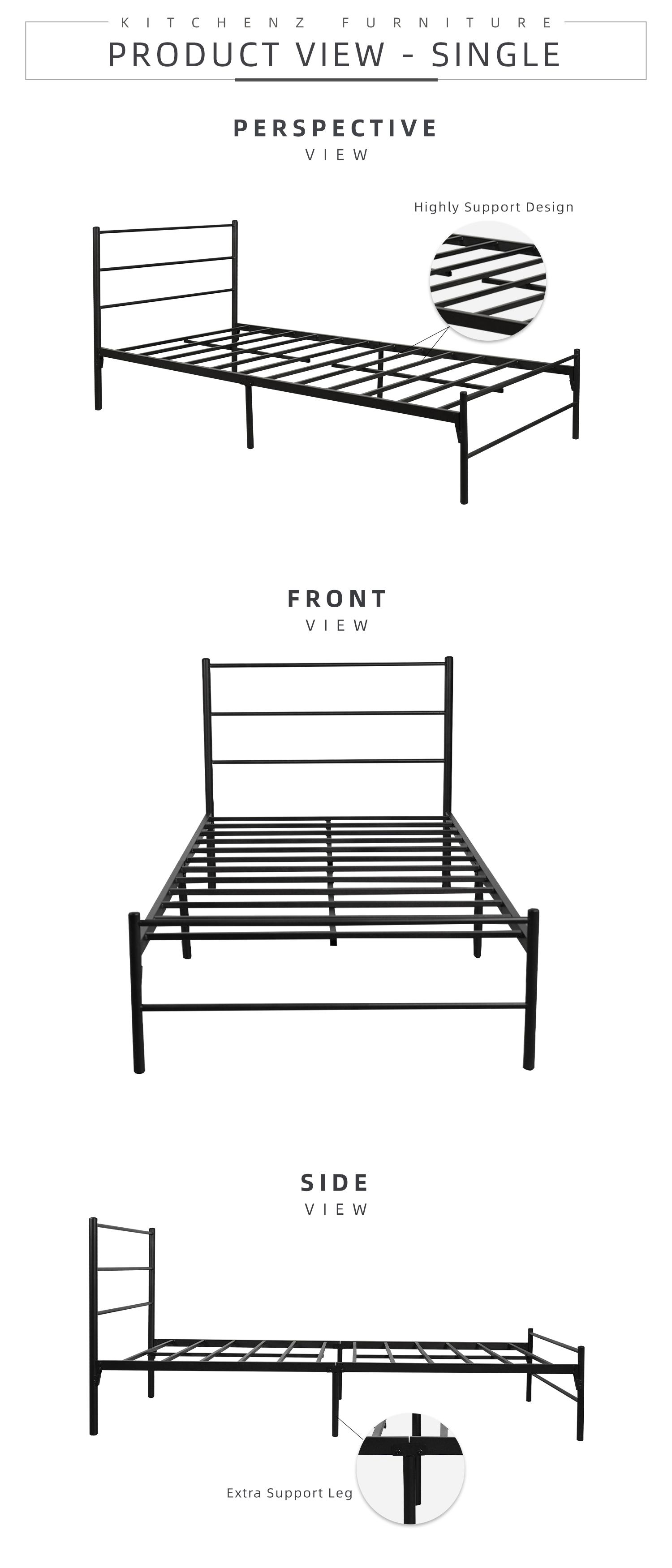 KitchenZ Metal 3V Single Bed Frame Powder Coat Metal Bed Frame Strong Load-bearing Capacity Durable