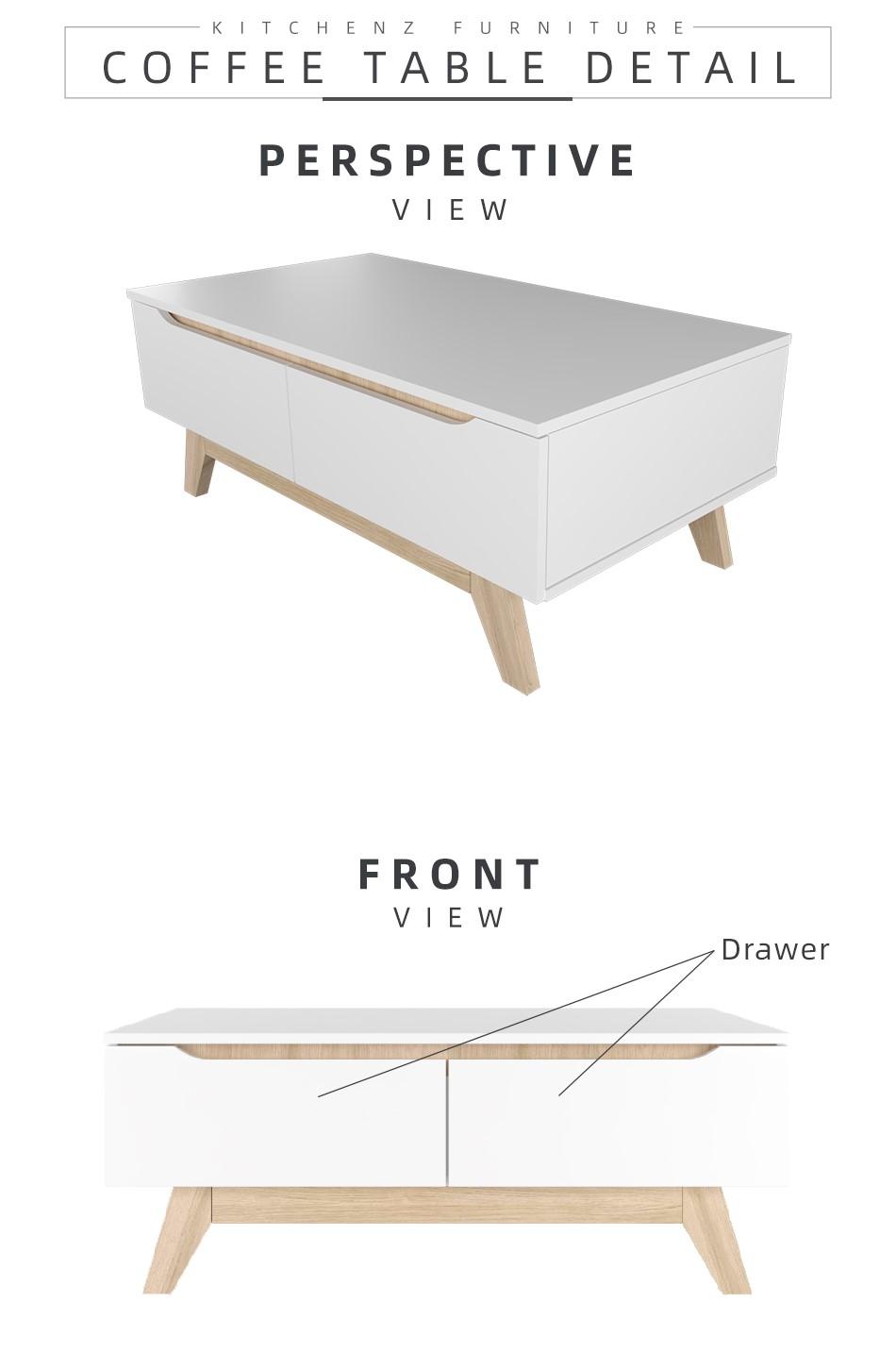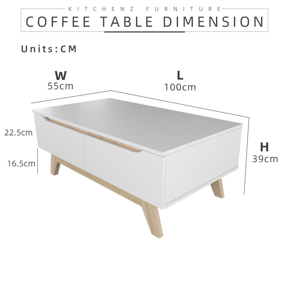 KitchenZ Simona Series 3.5Ft Coffee Table Living Room With Drawer cabinet wood furniture nordic