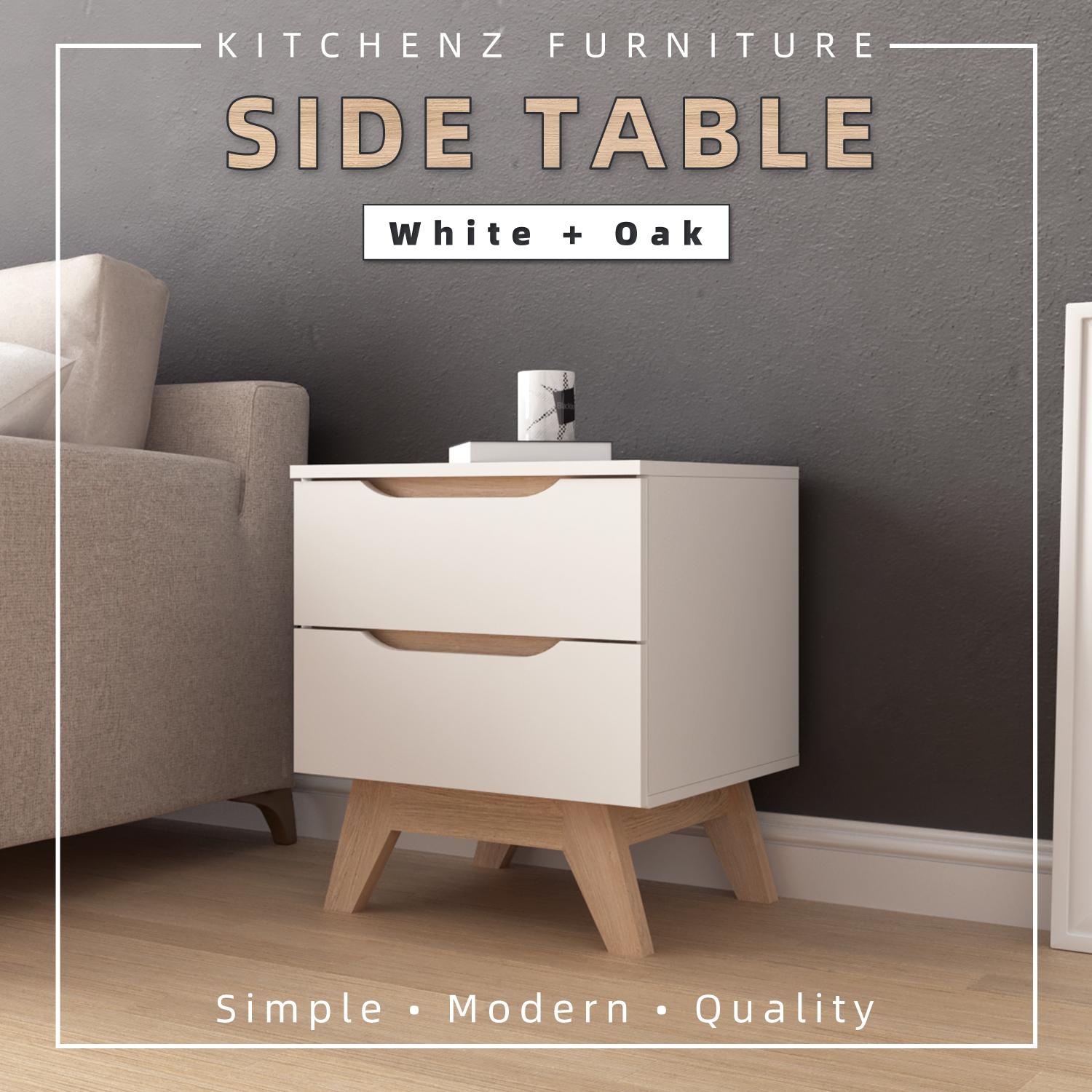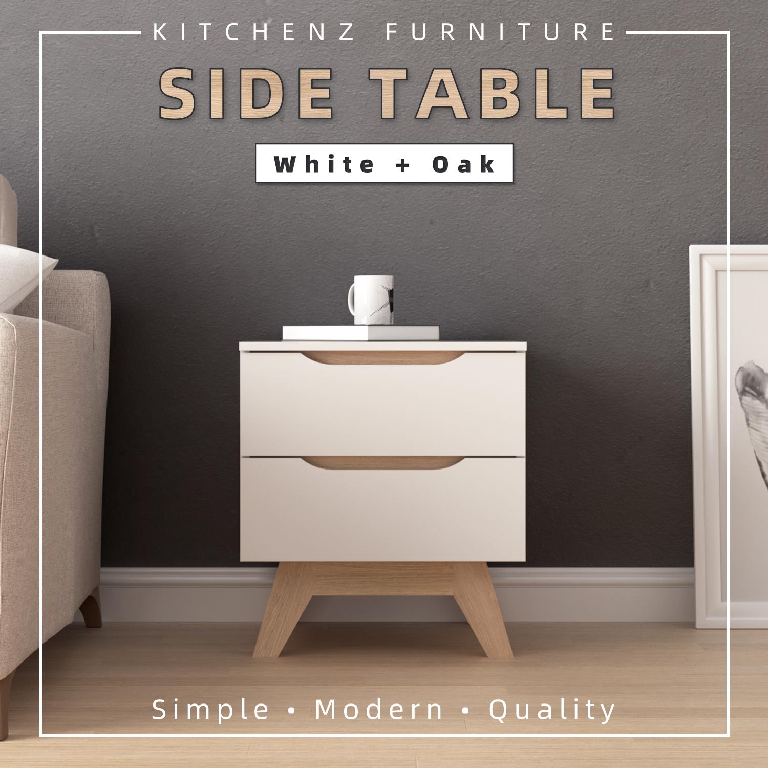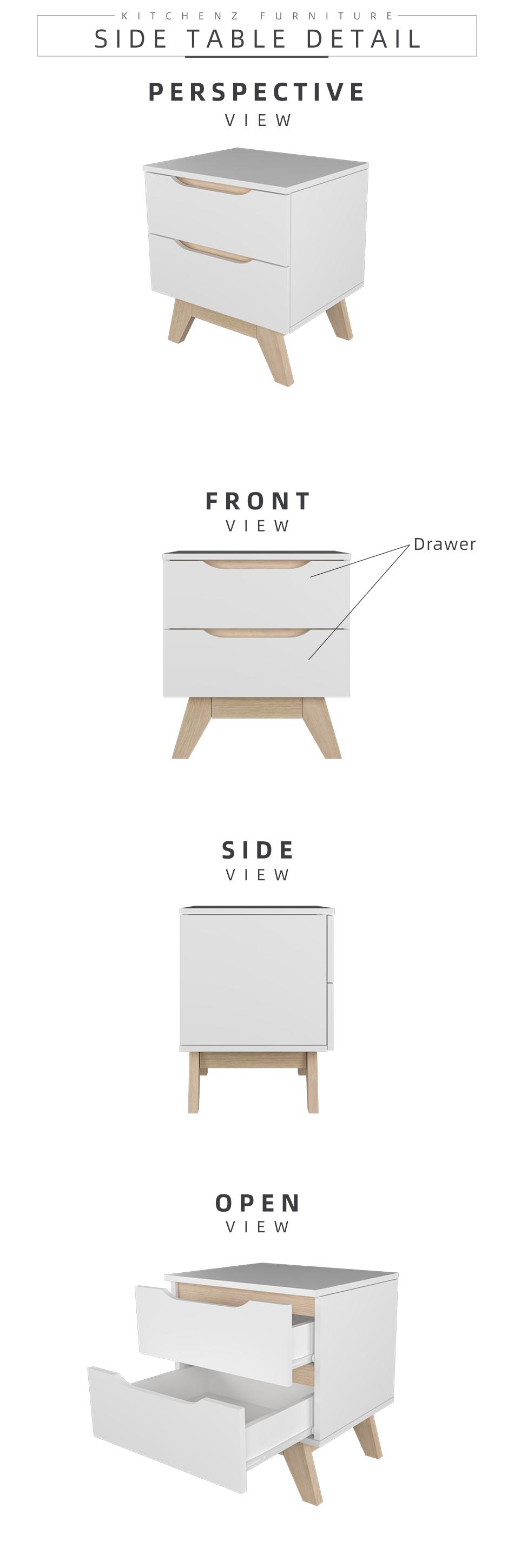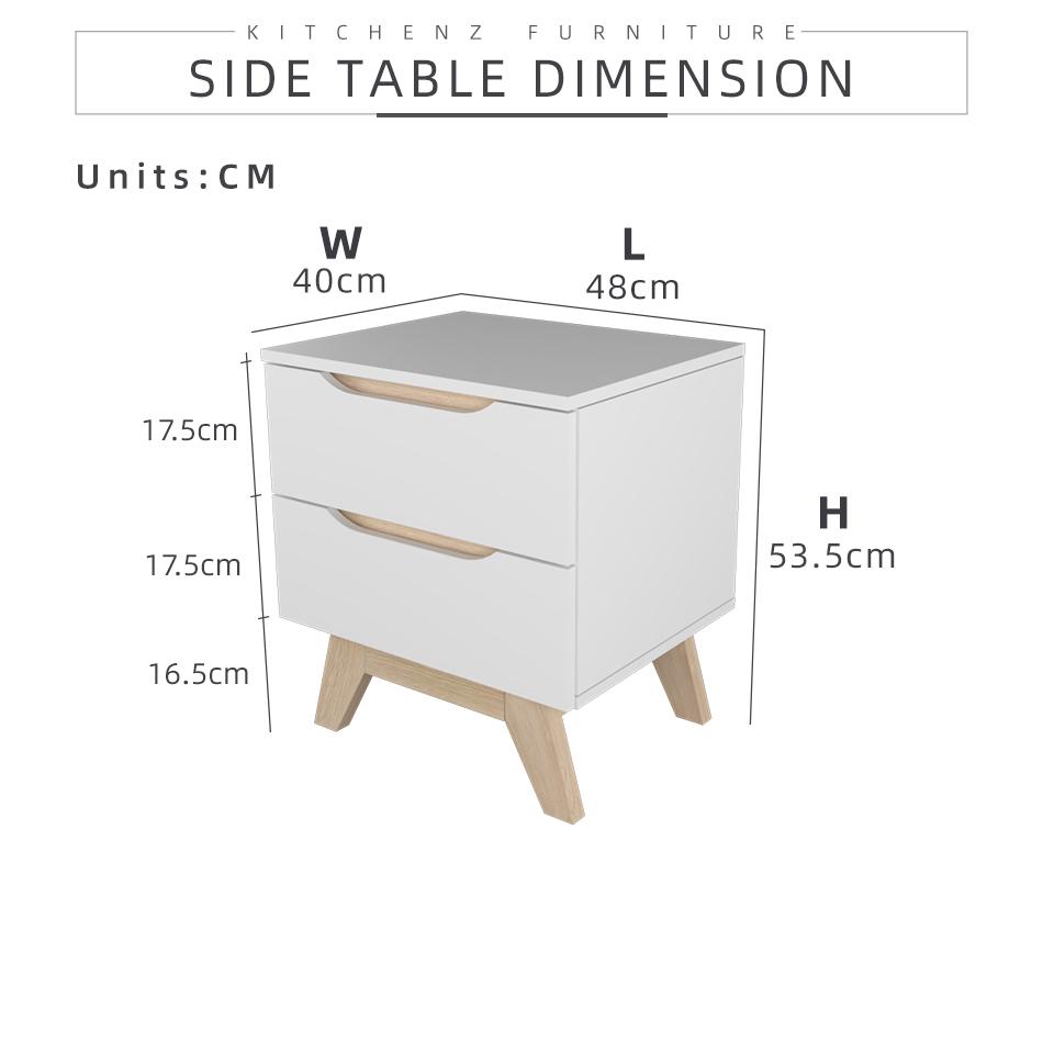 KitchenZ Simona Series Side Table Bedroom Side Drawer Bedside Table Wooden Leg
